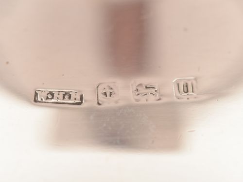 A nice English Capstone silver inkwell with glass liner flip up lid and hallmarked Birmingham 1919 and marked WHH for the maker William Hair Haseler. FREE worldwide delivery. Measurements: Height: 3 (approx 7.5cm) Diameter across base: 5 (approx 12.5cm) Weight: 468g IN good condition - any dark areas are shadows from the photography.