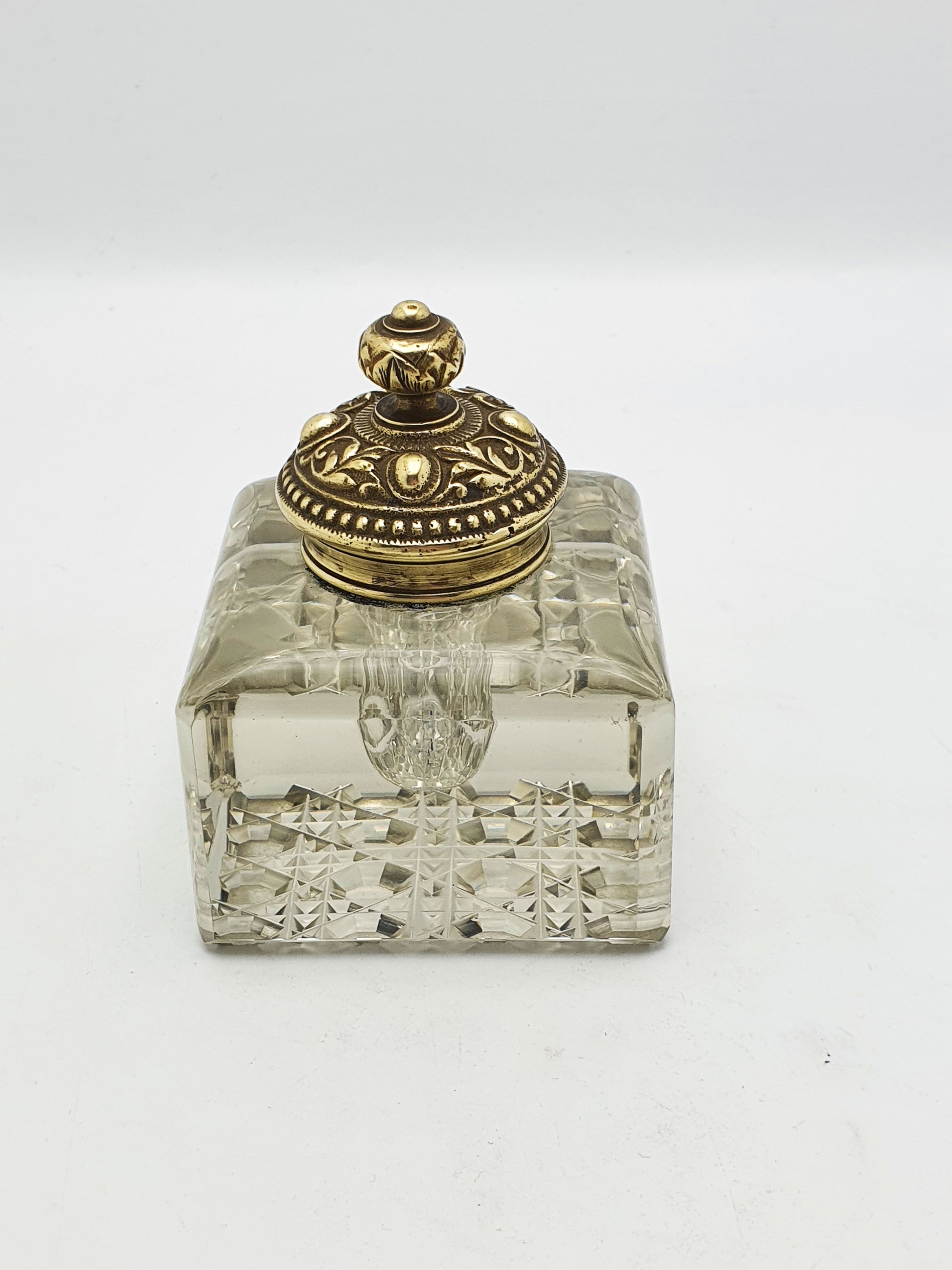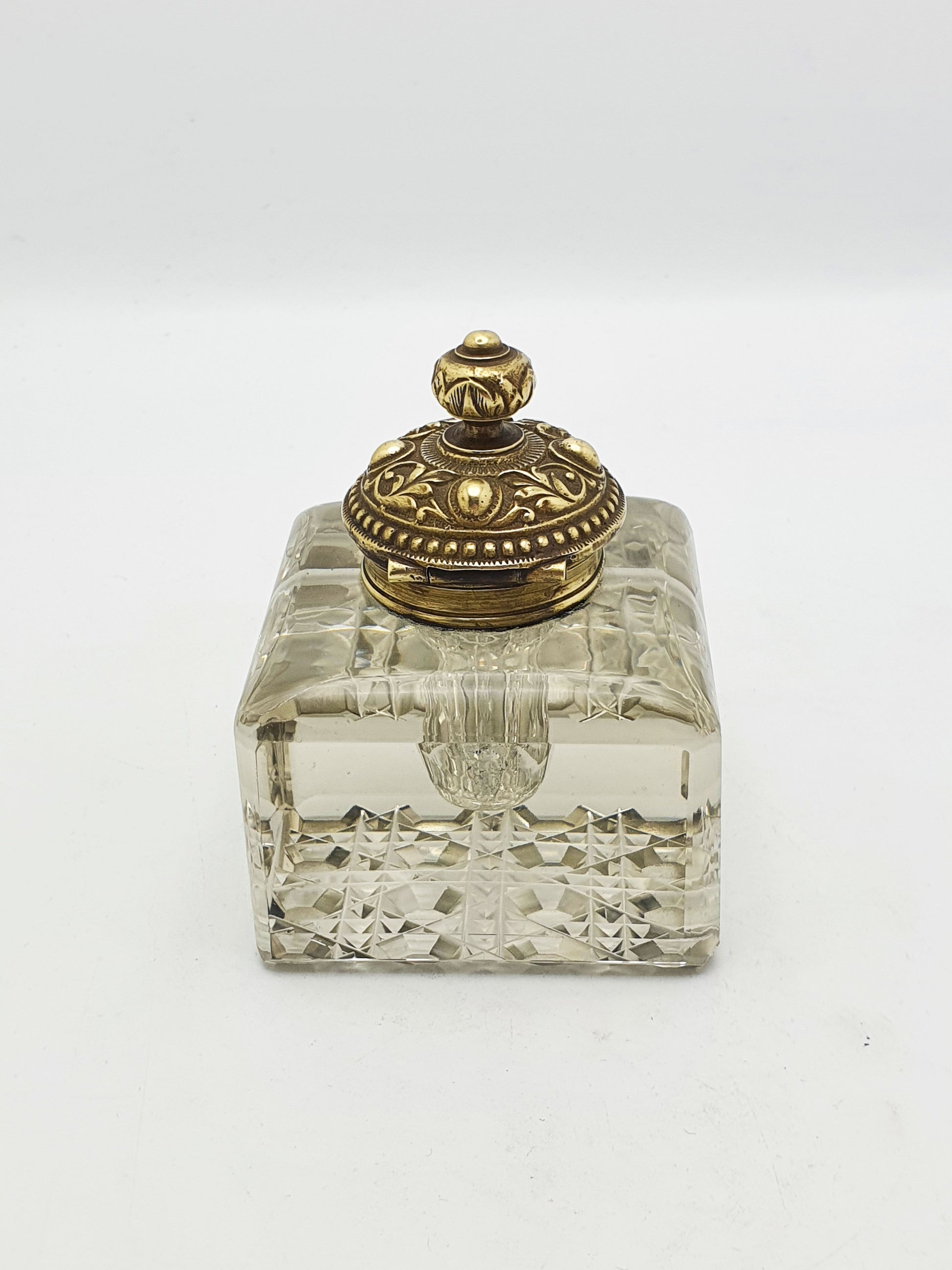 Lovely Antique Victorian Grand Tour Brass & Cut-Glass Inkwell – circa 1890
