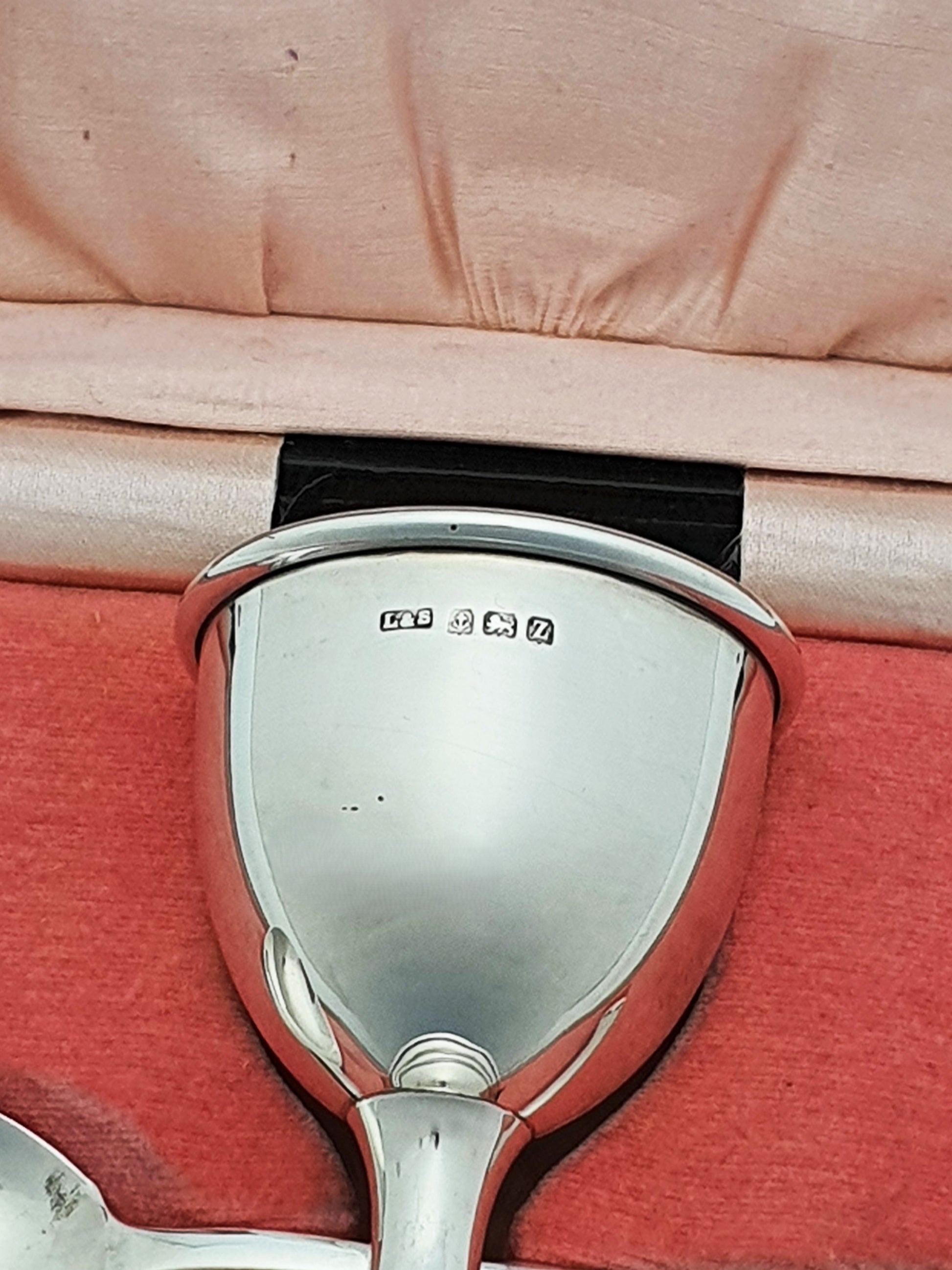 Lovely Cased Vintage Sterling Silver Egg Cup & Spoon Set - 1949