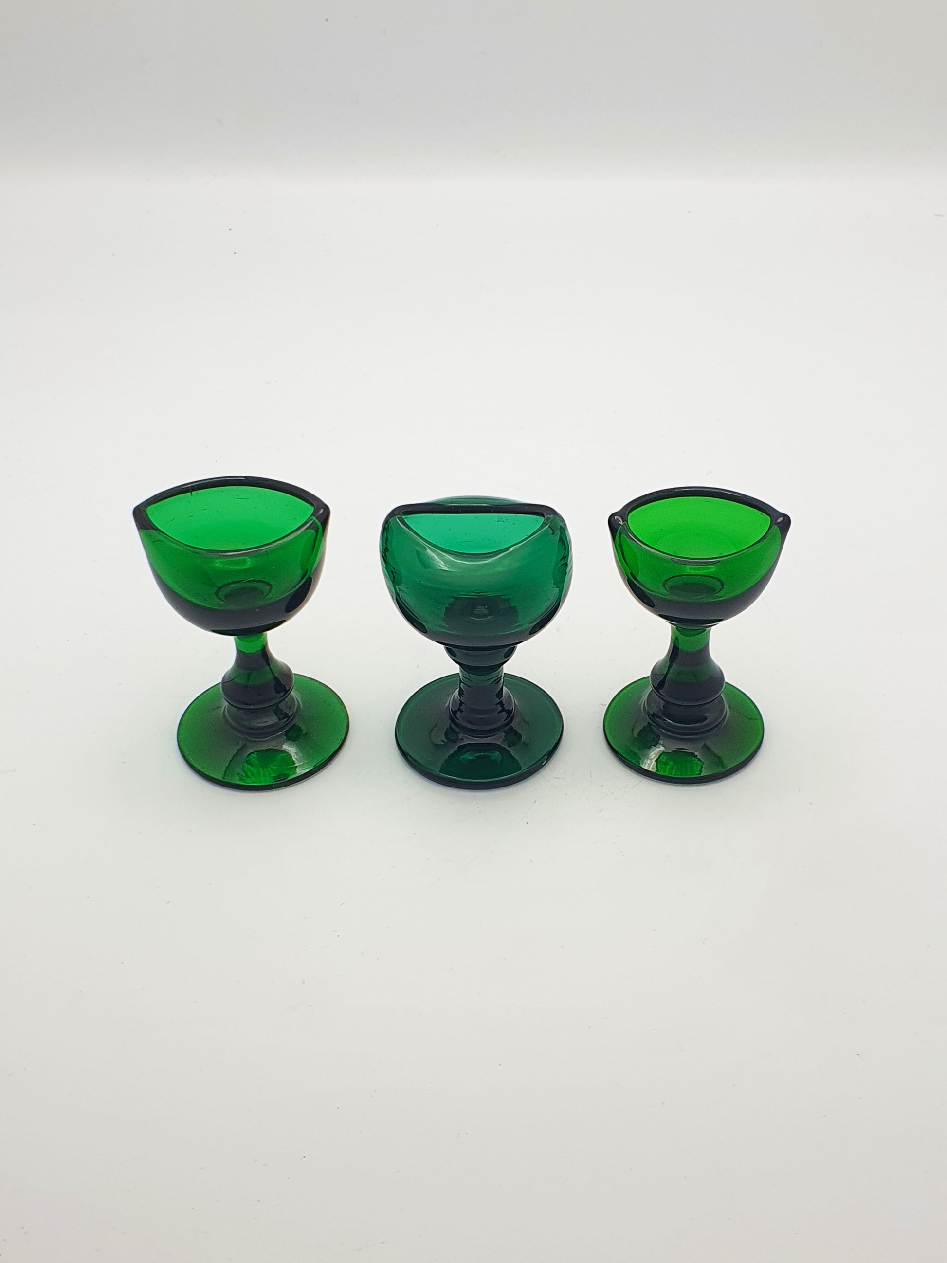 Lovely Collection of 3 Antique Victorian Bristol Green Glass Pedestal Eye Baths – circa 1860