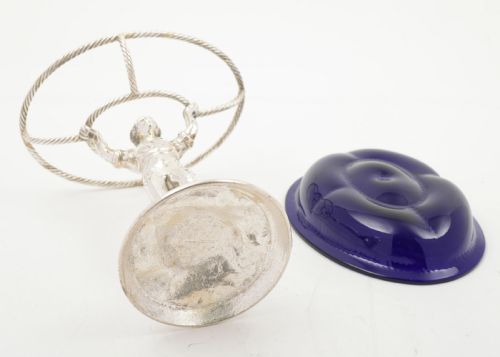 A Lovely Edwardian Colonial Style Serving Dish with Standing Figure with cobalt blue removable dish . Circa 1905 Free Worldwide delivery Measurements; Height 6 1/2 ( approx 16.25 cm ) Length 5 1/2 ( approx 13.75 cm Width 4 ( approx 10 cm ) Weight 480 In good condition there are no cracks or chips to the glass - any dark areas are from the photography