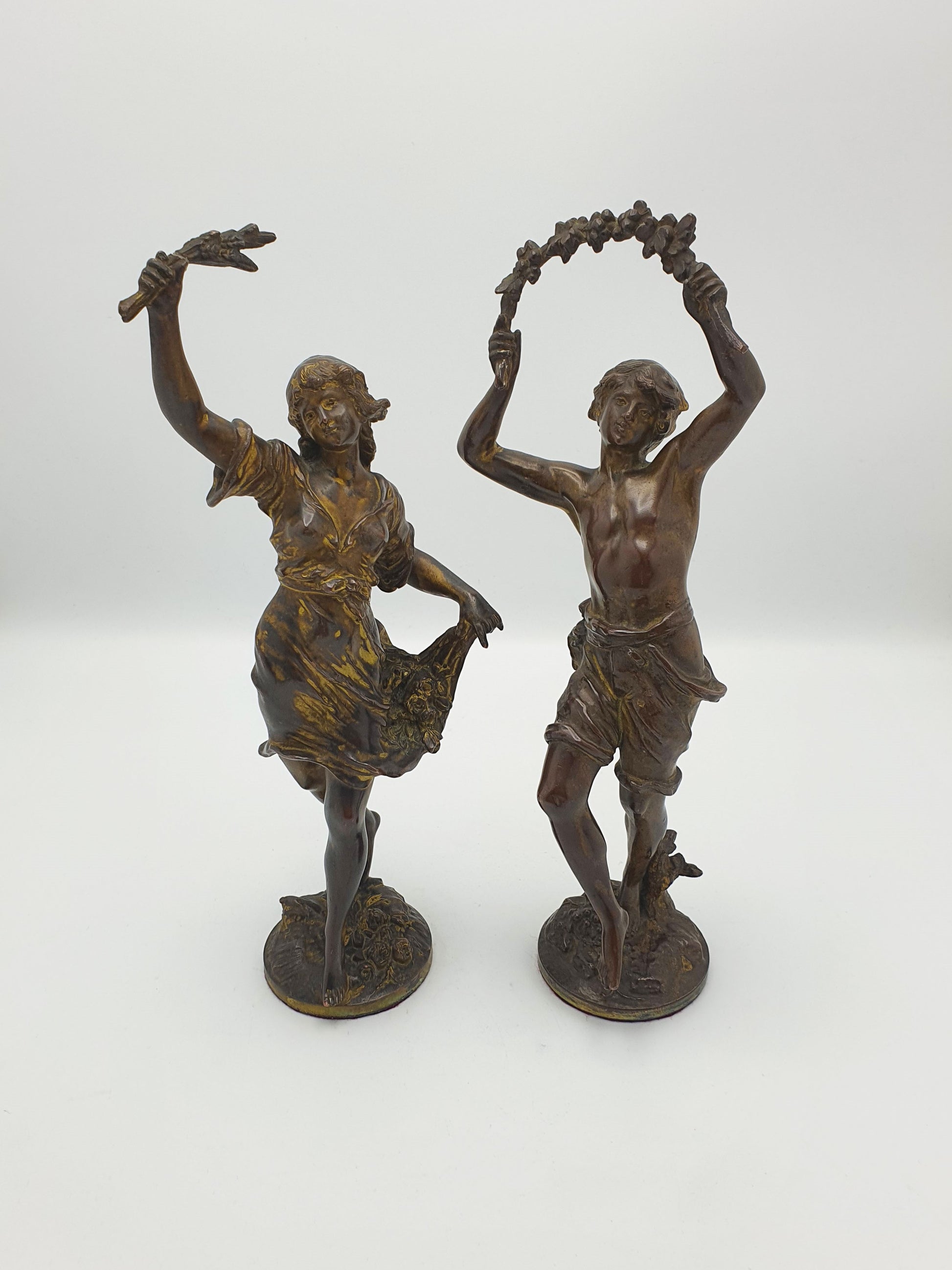 Lovely Pair of Antique French Bronze Harvest Dancers Figurines - circa 1900