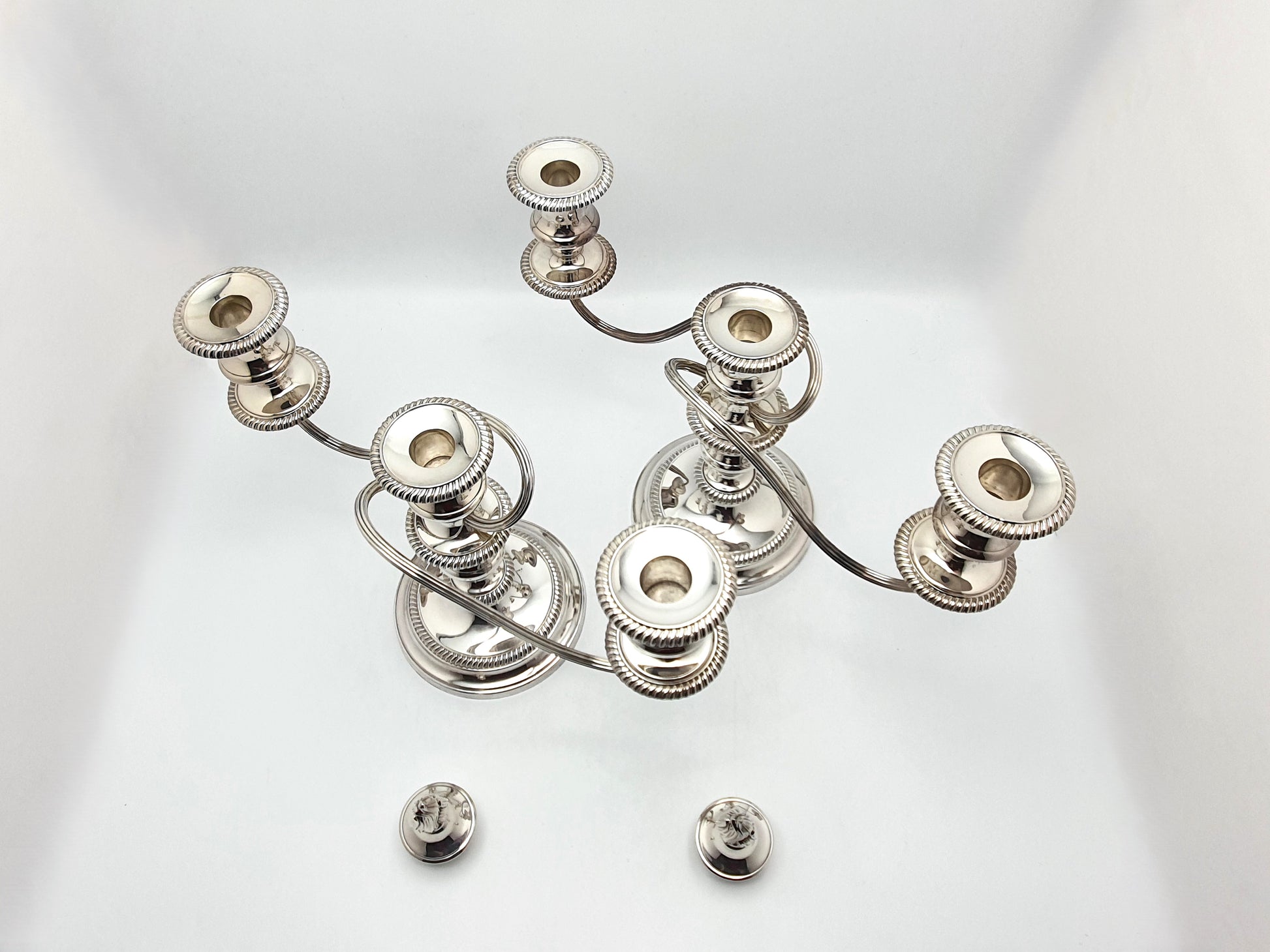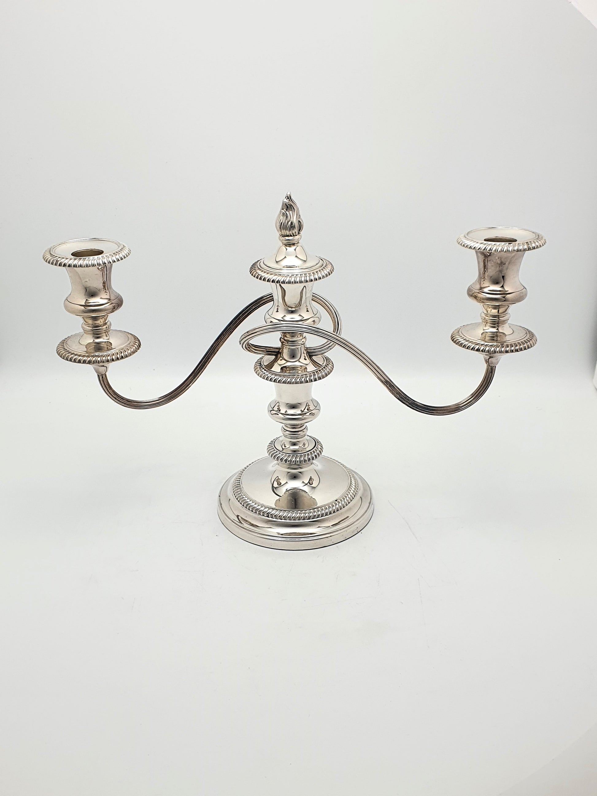 A Lovely Pair of Antique Three Branch Silver-Plated Low Candelabras with removable centre snuffers gadrooned decoration – circa 1920.