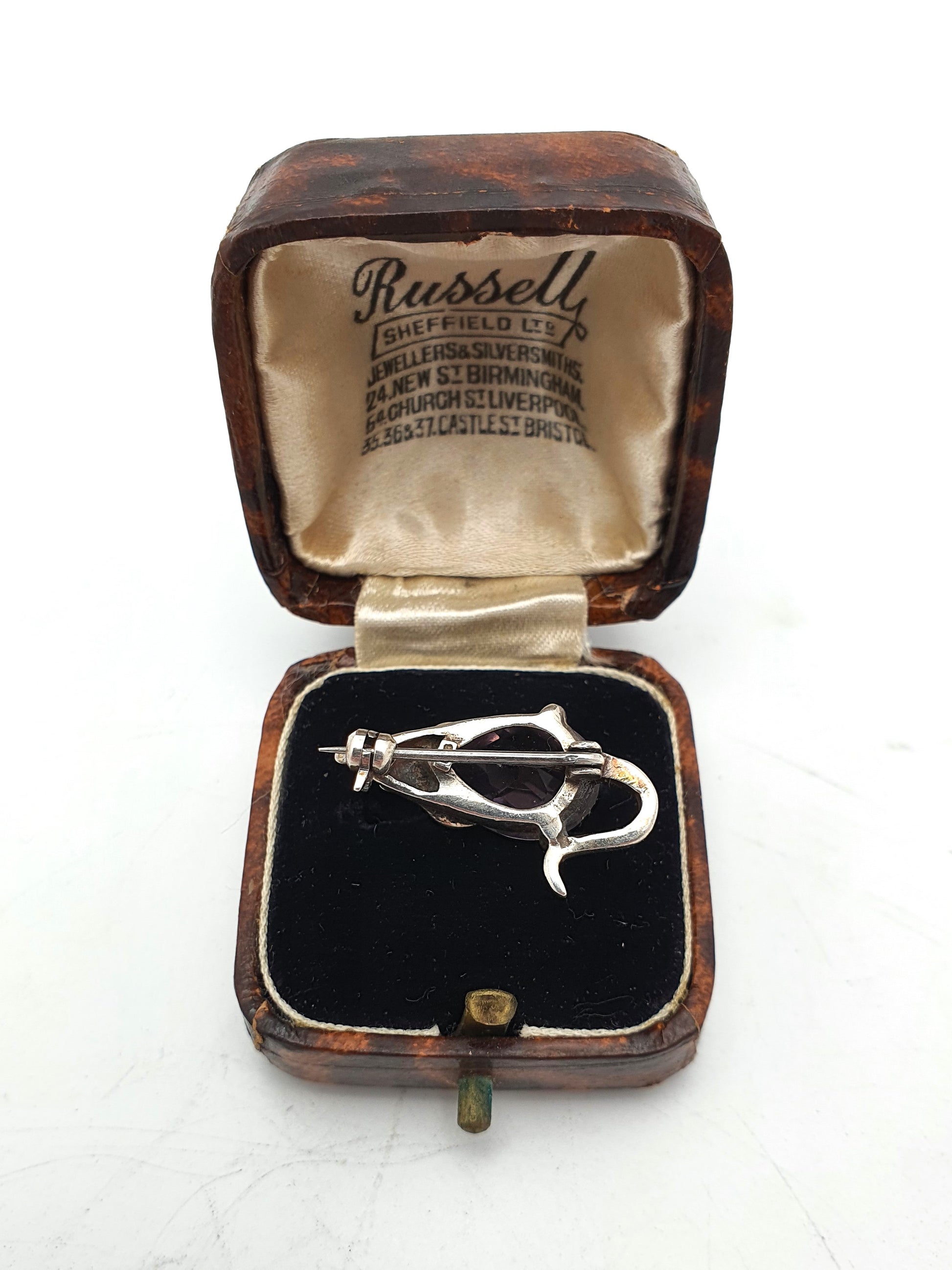 A Lovely Silver and Amethyst Mouse Brooch with marquisette decoration to the ears – circa 1970