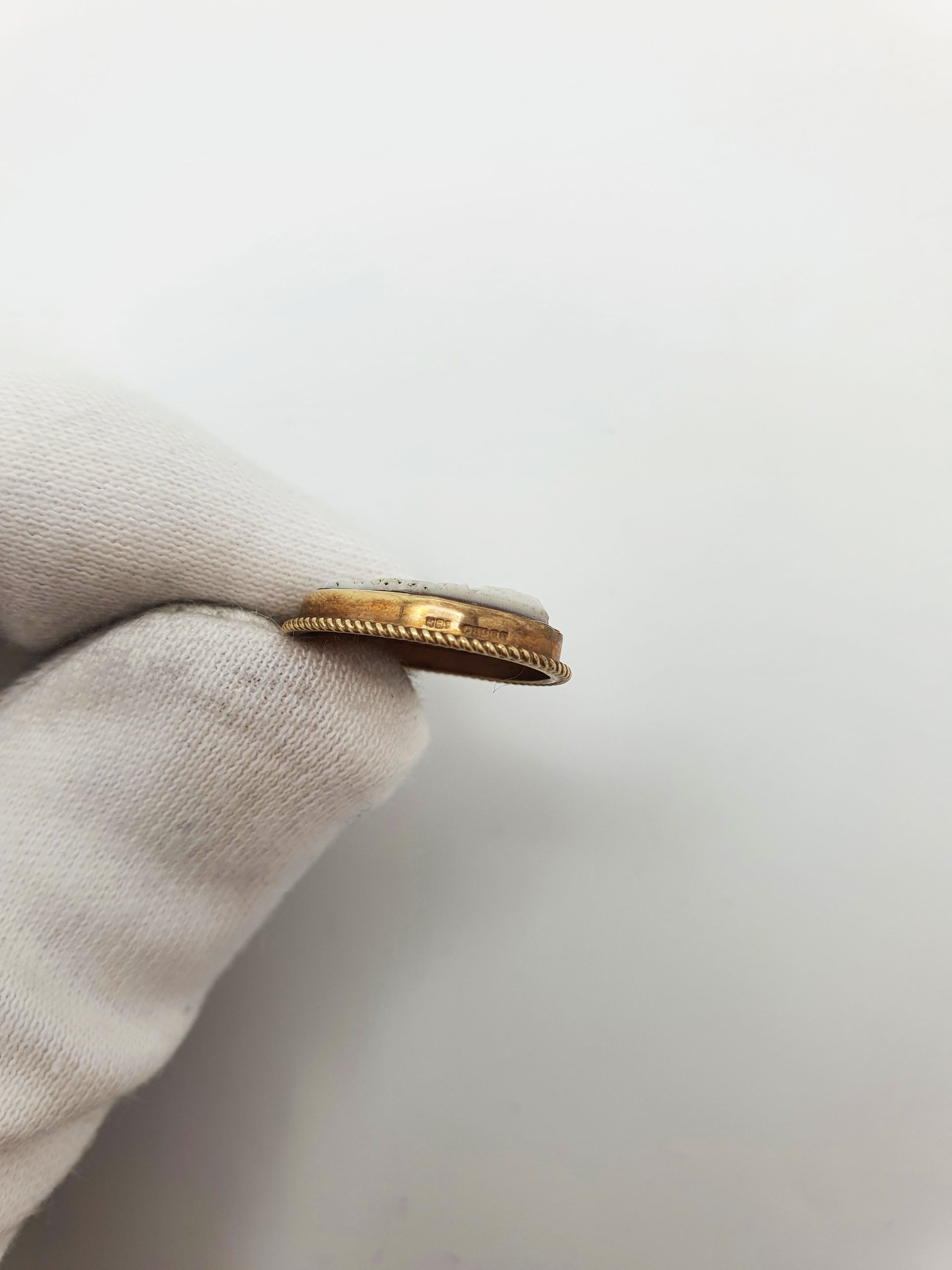 In good condition – The cameo remains crisp and intact with no visible chips or cracks. The gold setting and chain have a gentle patina consistent with age.