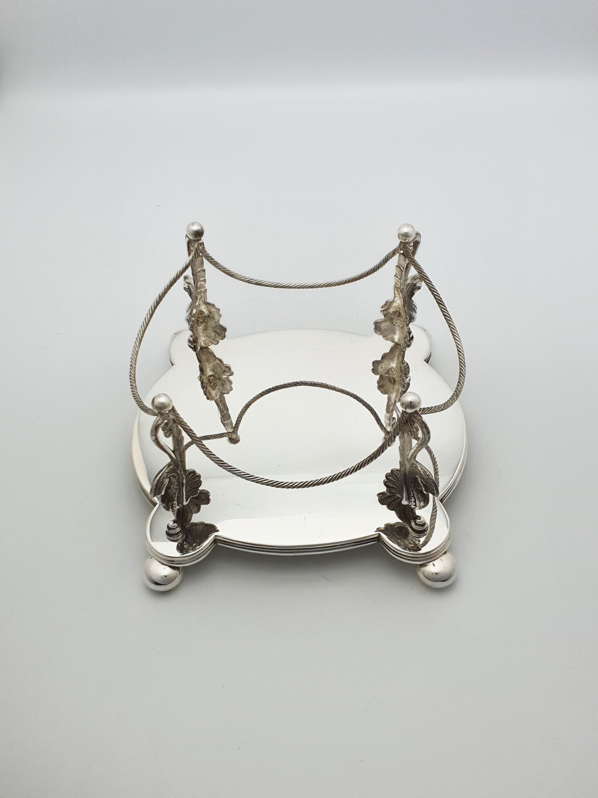 In good condition – The glass is intact with no chips, cracks, or losses. The cuts remain sharp and crisp. Silver plate is in very good condition with minor age-related surface marks. The stand and supports are structurally sound; no loose joints or breaks.