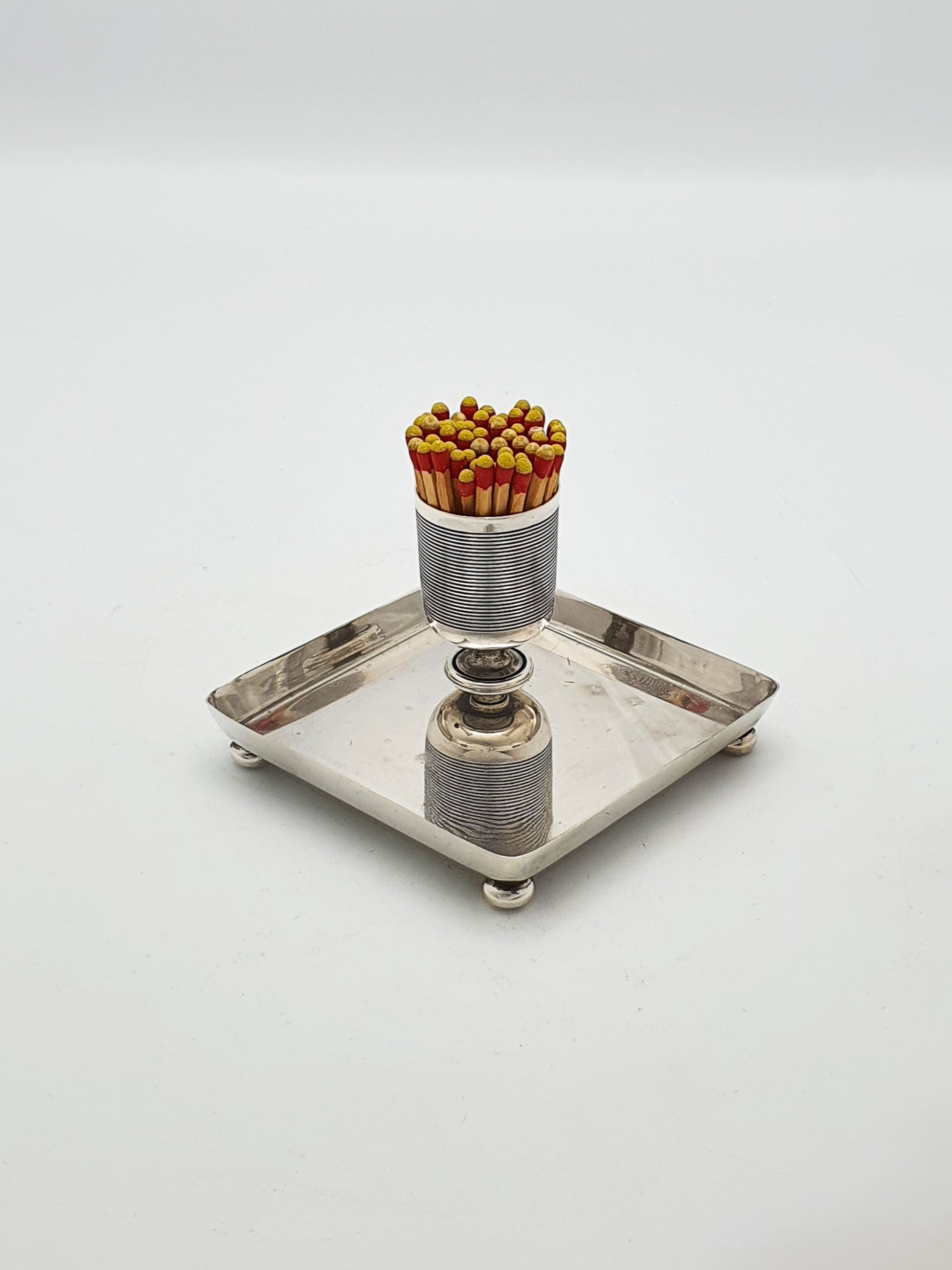 * This match striker set would have originally graced a gentleman’s desk, drawing room, or smoking parlor—today, it’s perfect as a decorative accent on a coffee table, bookshelf, or fireplace mantel.