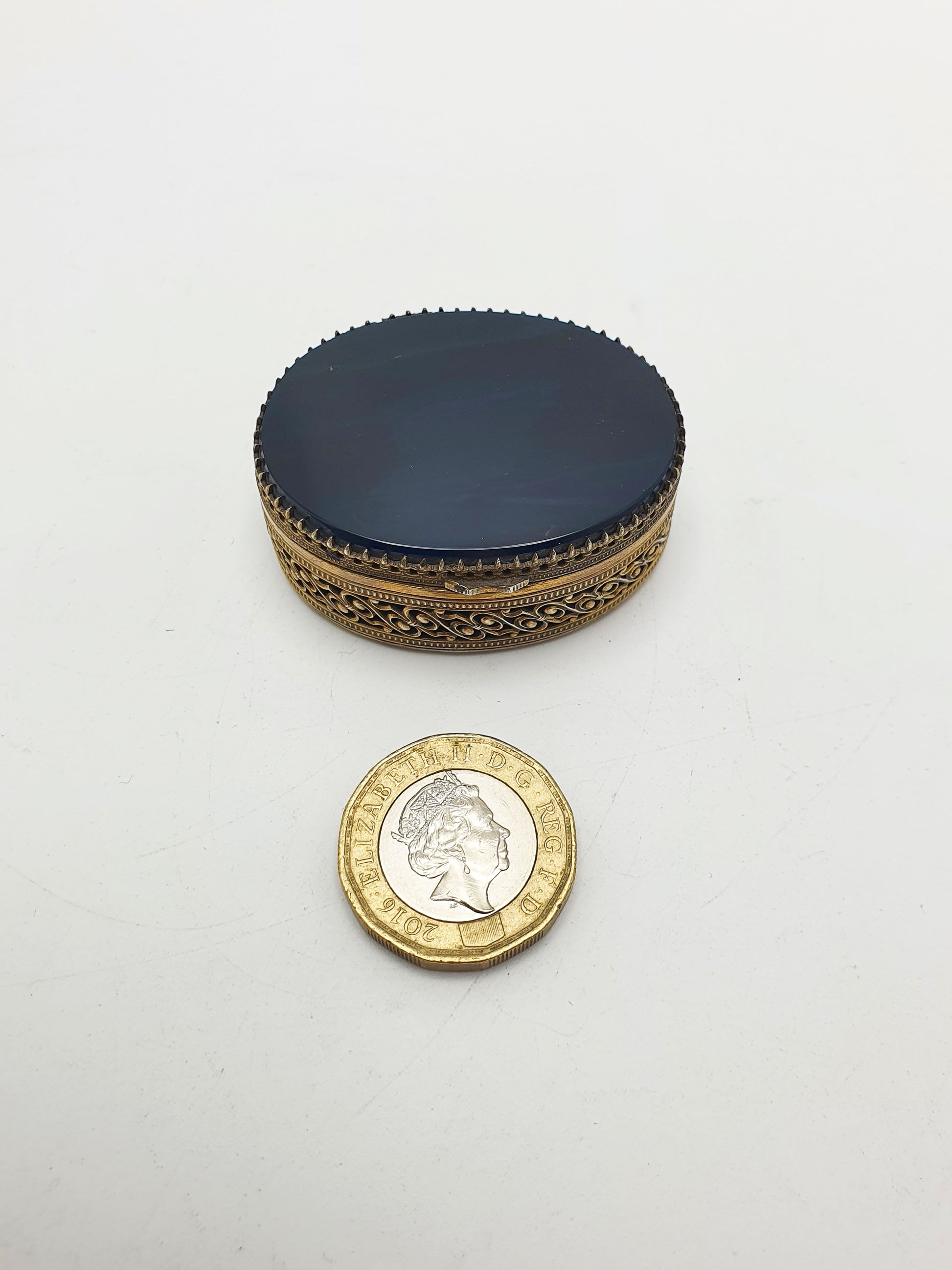 In good condition – Light age-related wear to the gilt consistent with age. The hinge opens and closes smoothly with lid fitting snugly.