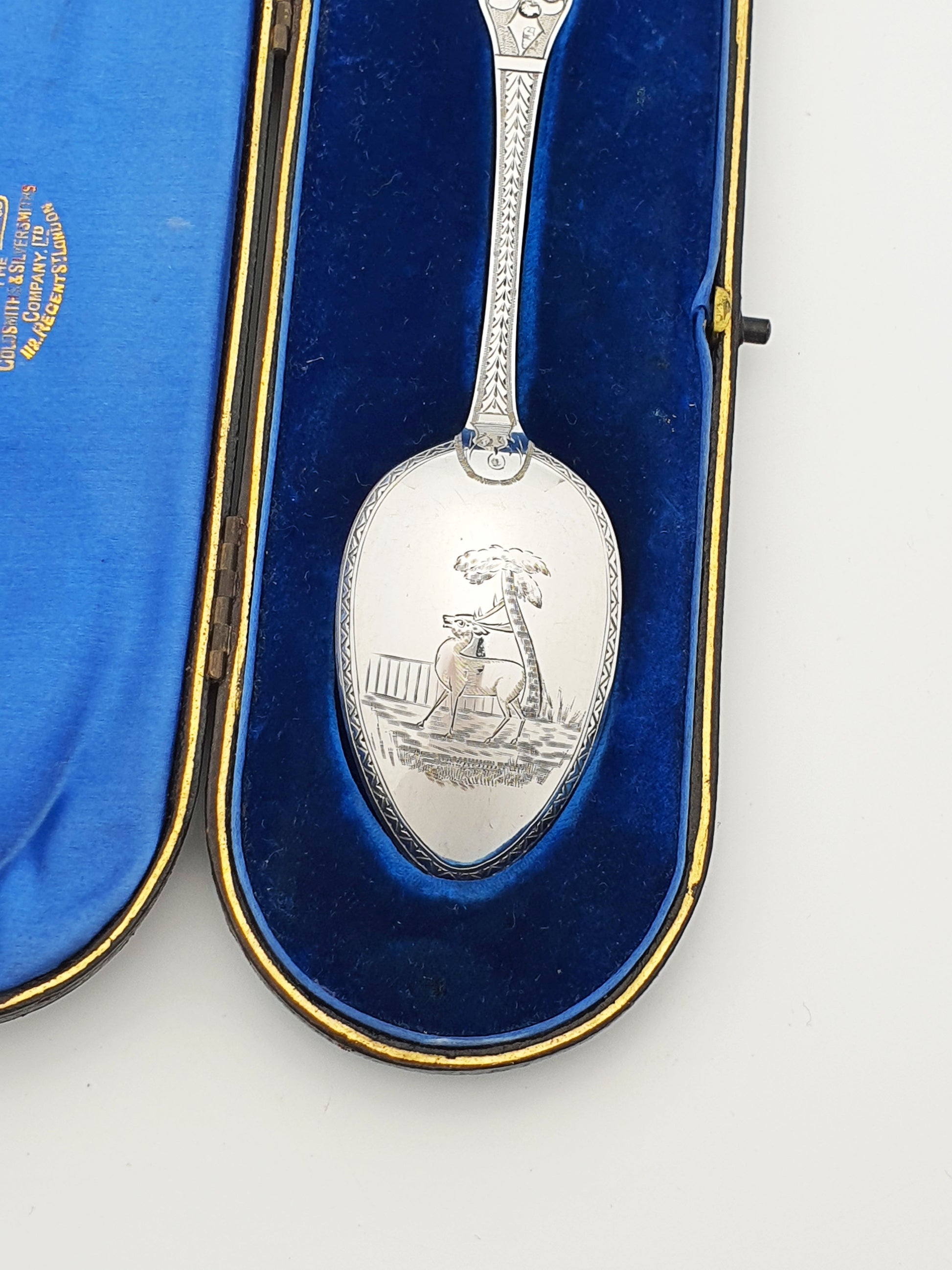 Nice Antique Victorian Silver Stag Presentation Spoon - 1877