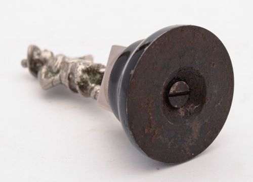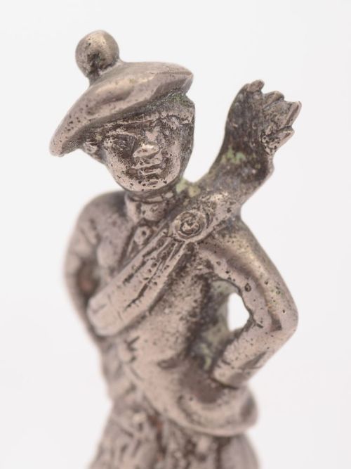 Nice Car Mascot of Scottish Highlander fashioned in chrome on brass with metal black enamelled plinth circa 1920 FREE worldwide delivery Measurements; Height 5 ( approx 12.5cm ) Diameter 2.1/4 ( approx. 5.6 cm ) In good condition some wear consistent with age