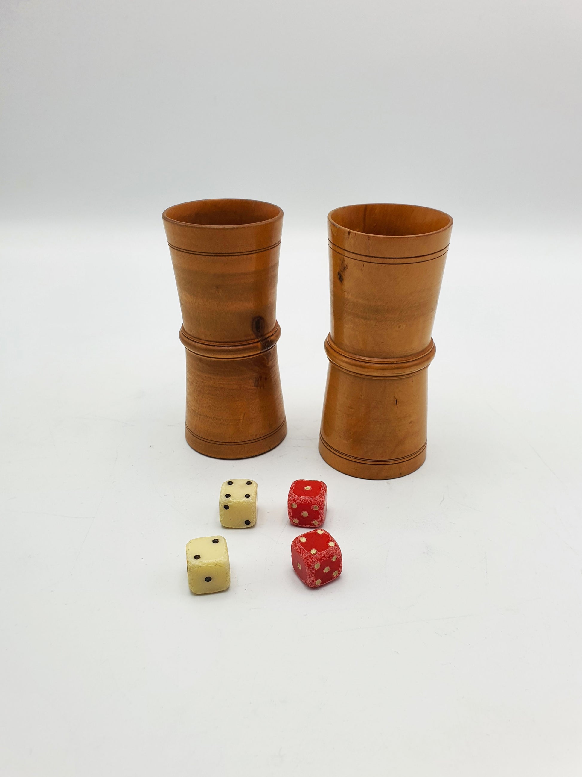 Nice Edwardian Boxwood Dice Shakers – circa 1905.