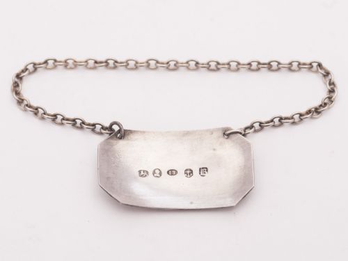 A nice English Georgian silver Madeira decanter label of oblong shape with cantered corners and line decoration to label. Hallmarked Birmingham 1825 and has the initials I T for the maker John Turner Birmingham. FREE worldwide delivery Measurements: Length: 4” (approx. 10cm) Width: 1 ½” (approx. 3.75cm) Weight: 10g In good condition - any dark areas are shadows from the photography there is no damage to the silver.