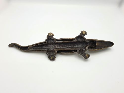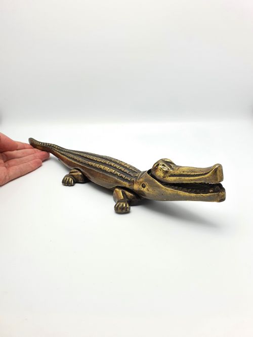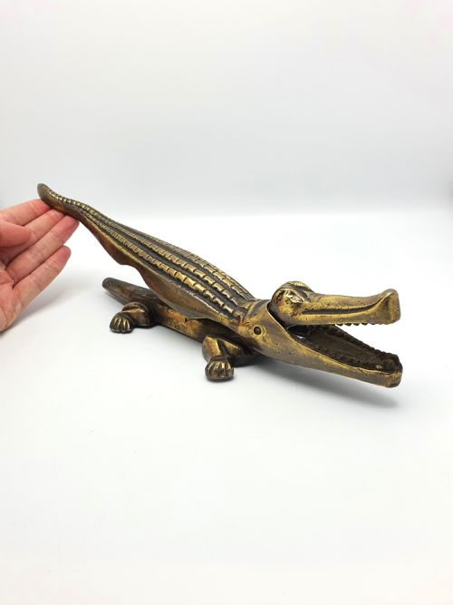 A Nice Brassed Iron Novelty Crocodile Nutcracker. This nutcrackers mechanism works by lifting the tail of the crocodile to operate the jaws in order to crack the nuts - circa 1920.