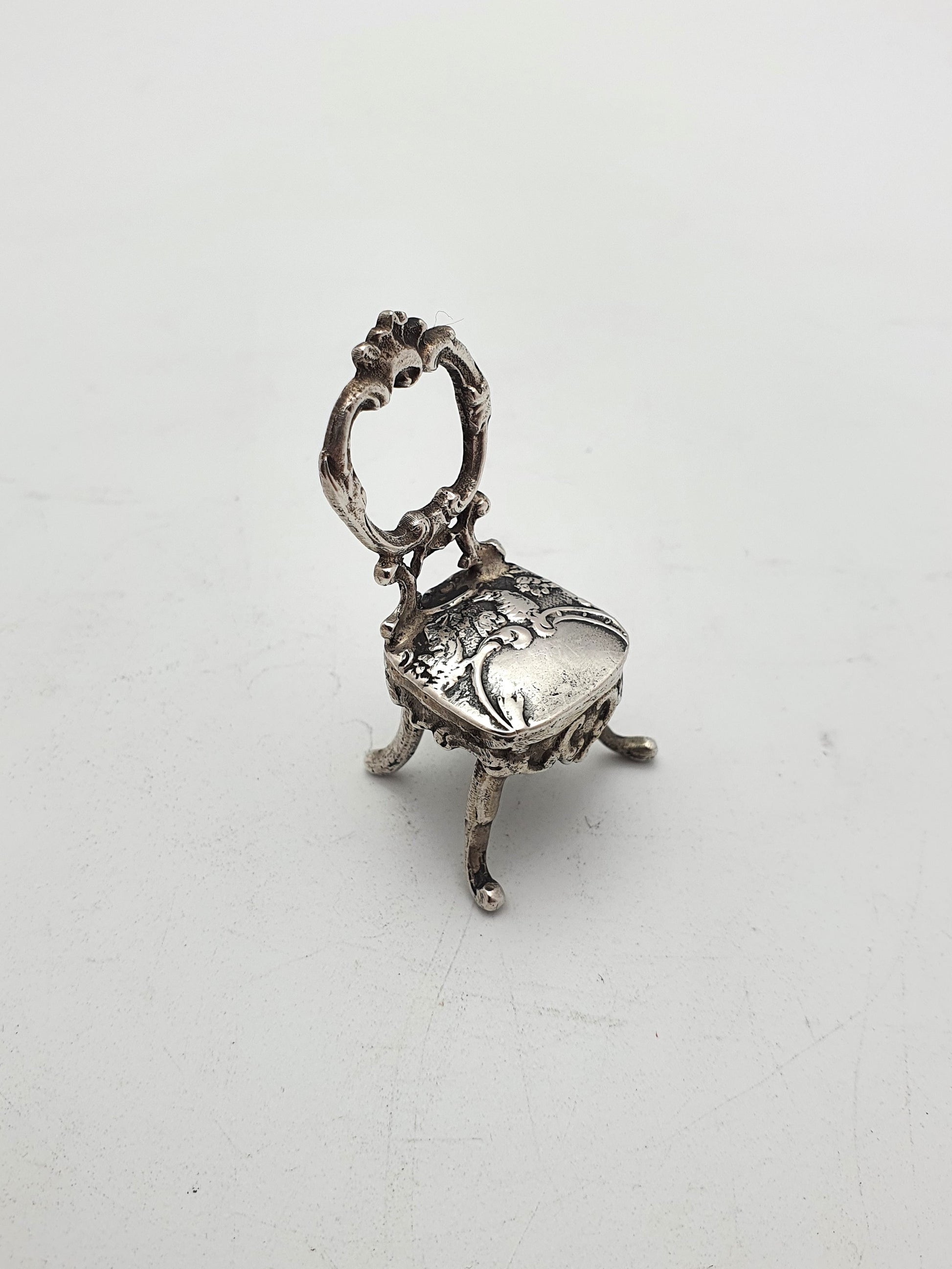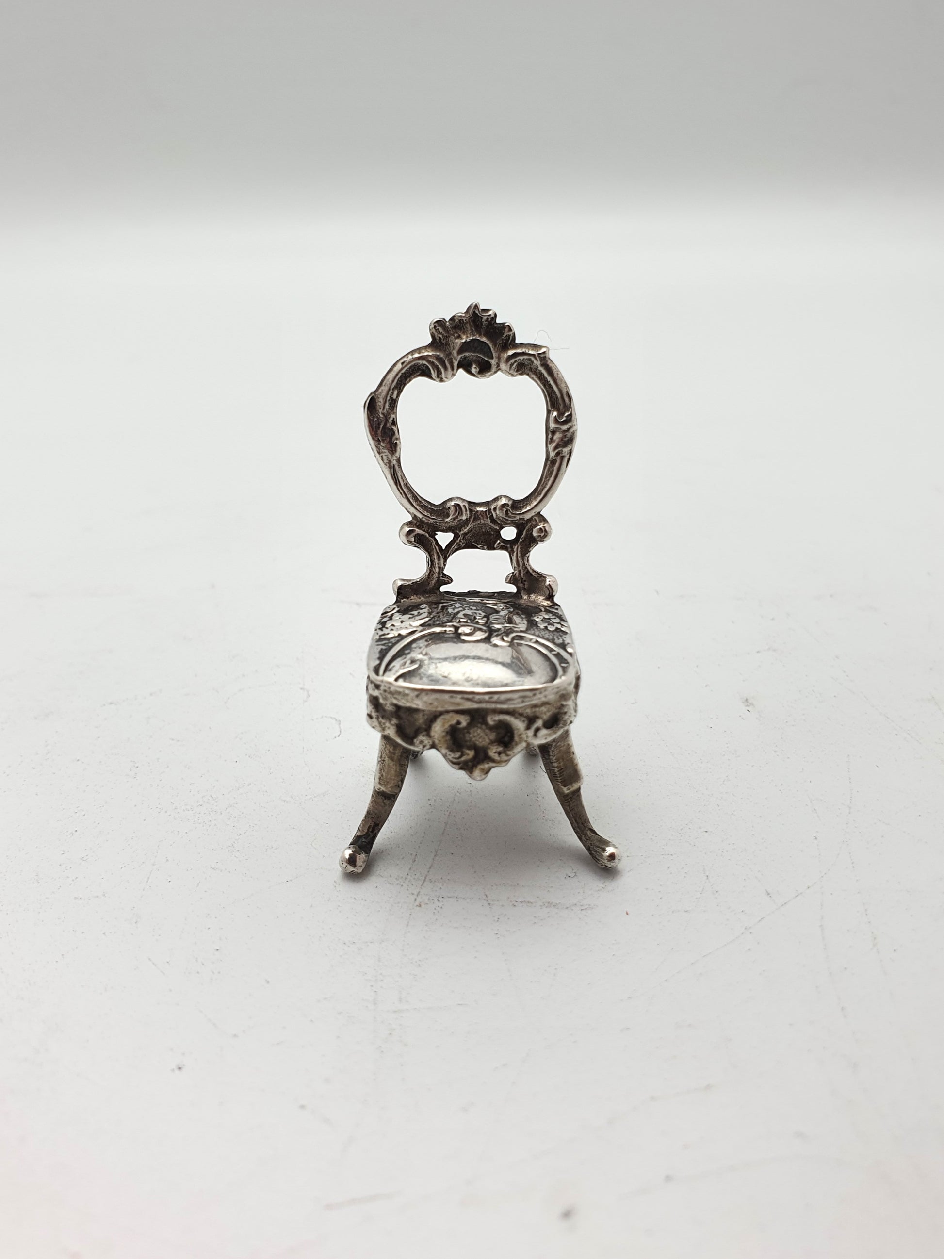 Nice Miniature Continental Solid Silver (.800) Chair – circa 1900.