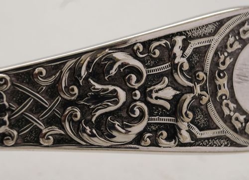 A nice cased pair of English Edwardian silver plated grape scissors with embossed decoration presented in modern silk and felt lined case. Circa 1905. UK Delivery FREE of Charge Rest of world delivery charge £20.00 Measurements: Length: 7 (approx. 18 cm) Total weight: 105 g In good condition - any dark areas are shadows from the photography.