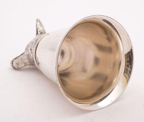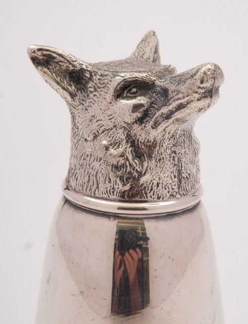A nice English vintage silver plated stirrup cup with fox head decoration. Circa 1960. FREE worldwide delivery. Measurements: Height: 5 1/2 (approx 14cm) Diameter across base: 3 1/2 (approx 9cm) Weight: 350g In good condition - any dark areas are shadows from the photography there is no damage to the silver plate.