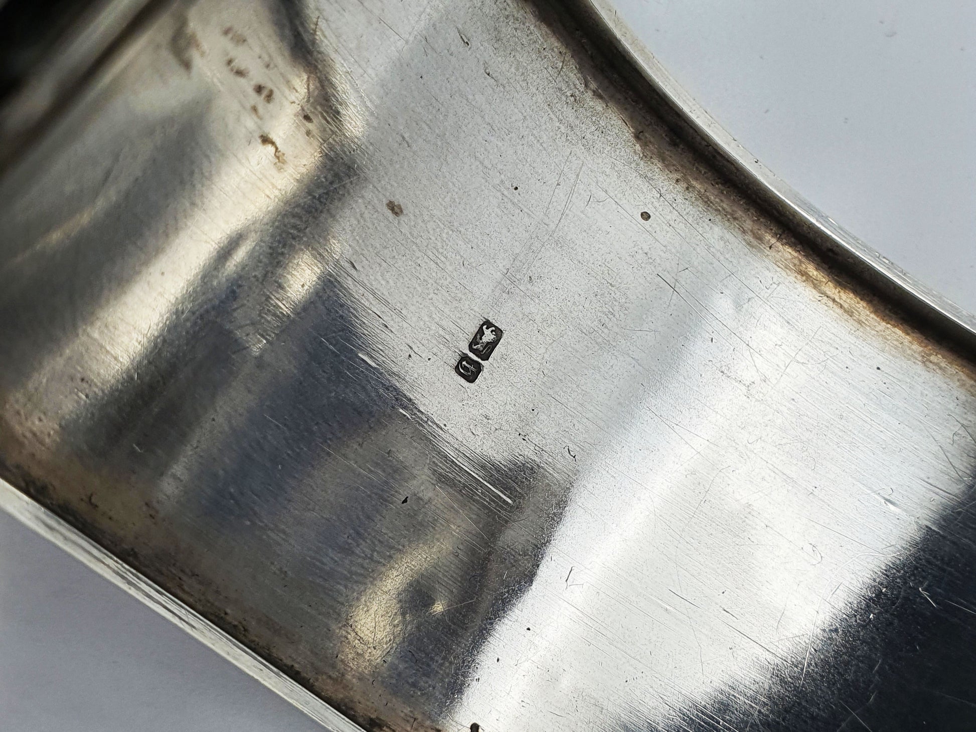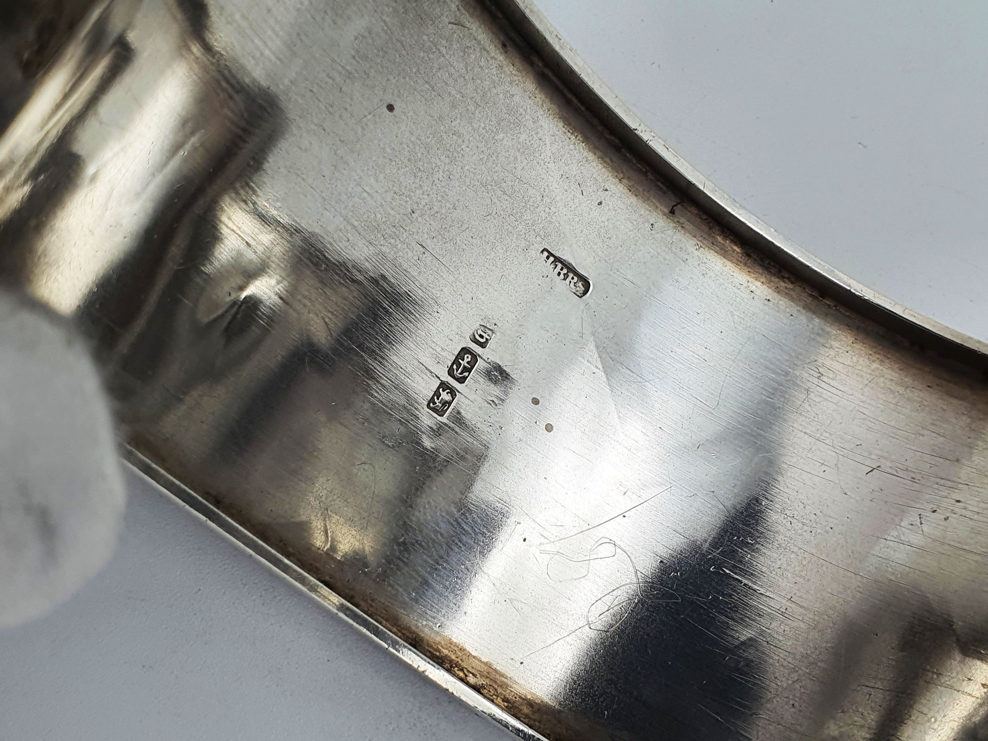 A Nice Victorian Sterling Silver Bangle Bracelet richly engraved with botanical bamboo designs and a depiction of a Crane. Hallmarked for Birmingham, 1882.