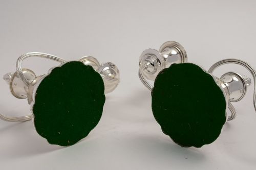 A lovely pair of Edwardian silver plated low candelabra heavily embossed and in excellent condition. Height is 7x 12 x 4 1/2 at base.