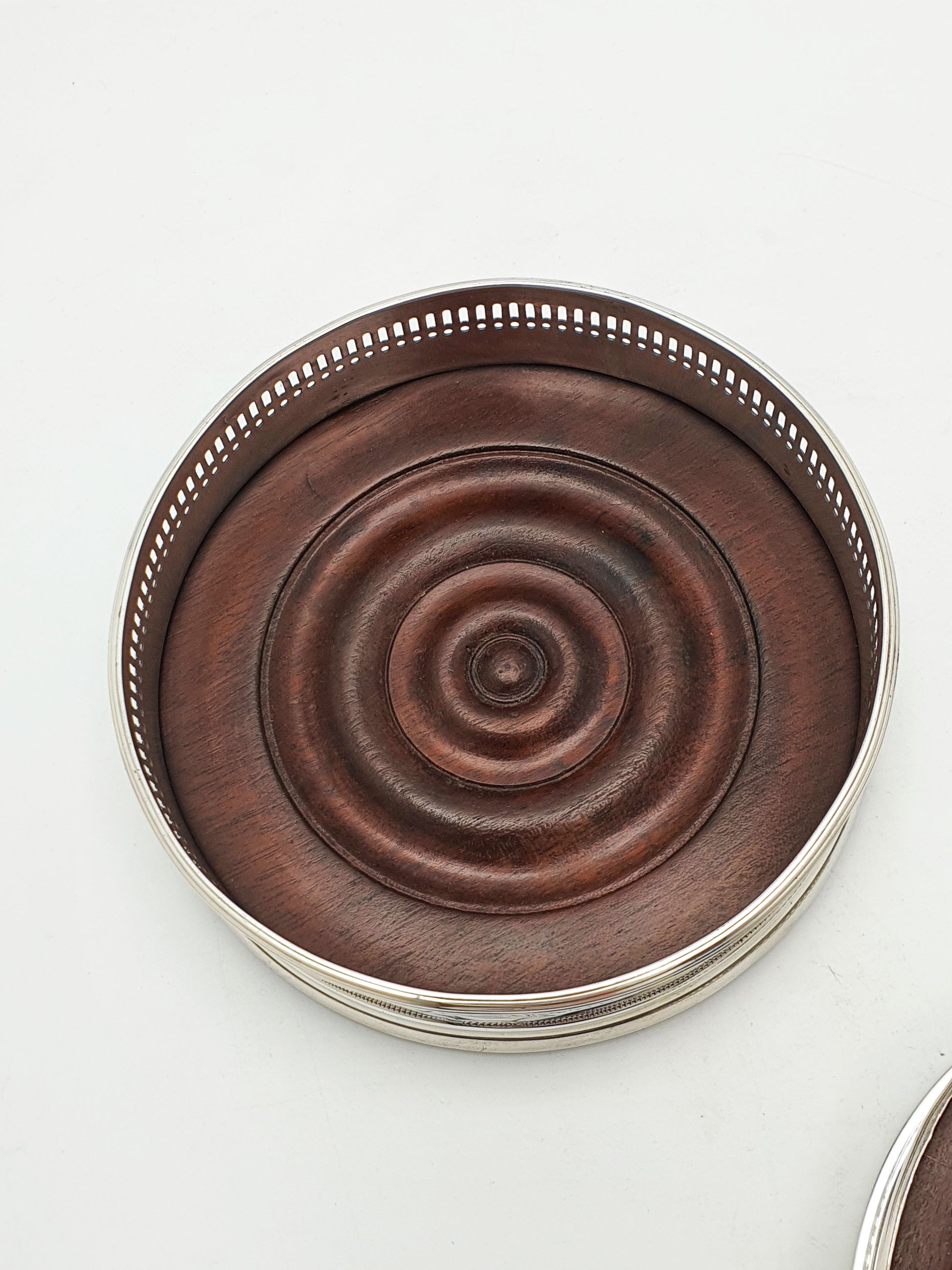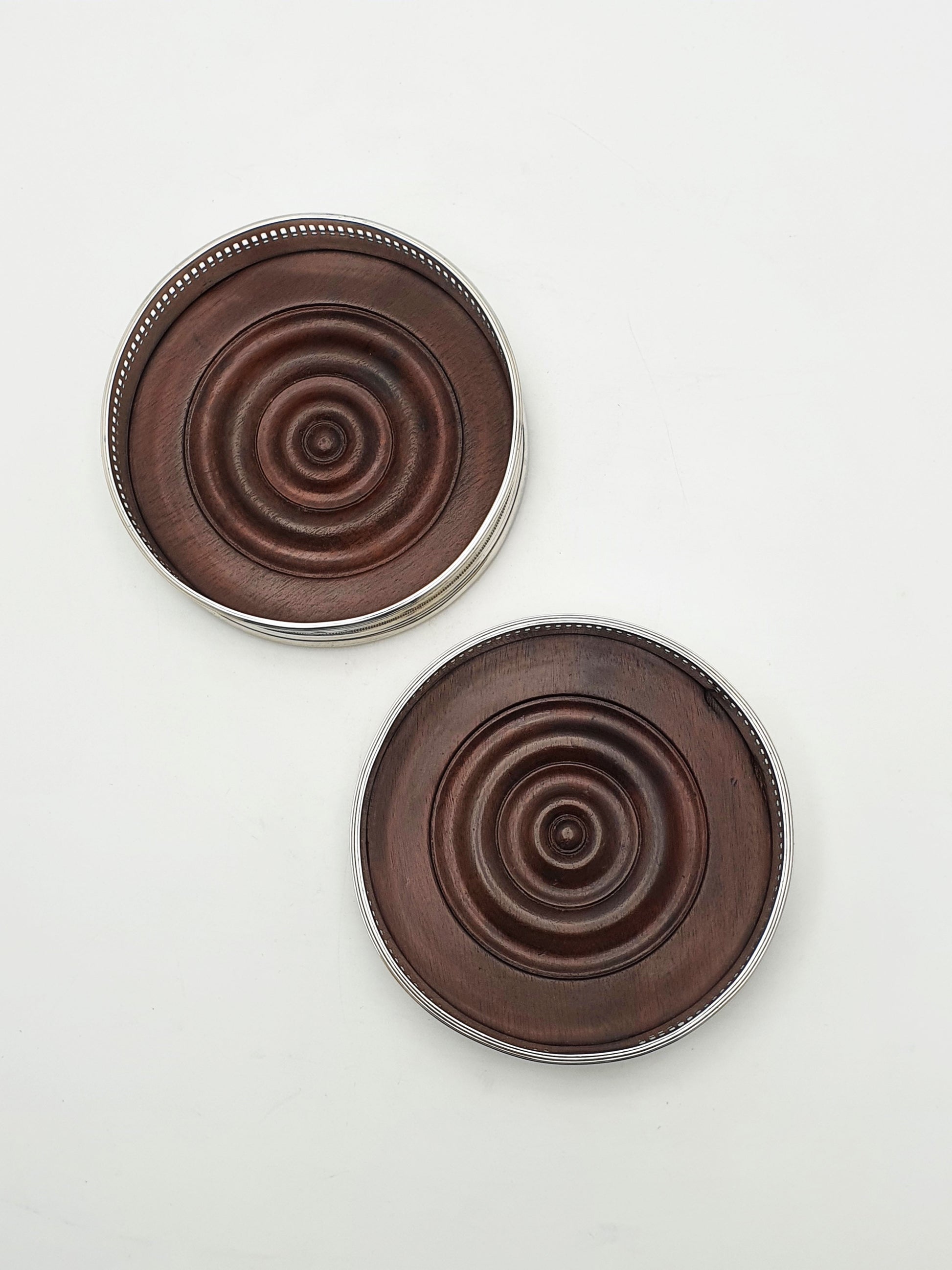 Pair of Antique Georgian Sterling Silver & Mahogany Wine Coasters – circa 1800