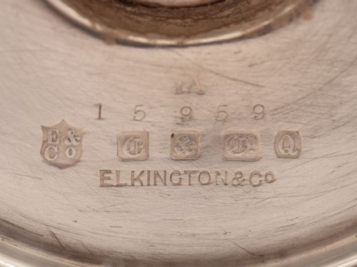 A nice pair of English Edwardian silver plated Elkington candlesticks made in the Georgian style with detachable drip trays has the Elkington date mark for 1902. FREE worldwide delivery. Measurements: Height: 10 (approx 25cm) Base: 4 (approx 10cm) Total weight: 632g Condition - In good condition however there are a couple of tiny dinks on the base edge of one of the candlesticks.