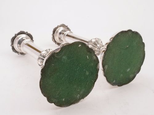 A nice pair of English Victorian silver plated candlesticks with embossed decoration and detachable sconces. Circa 1880. FREE worldwide delivery. Measurements: Height: 9 (approx 22.5cm) Diameter across base: 4 (approx 10cm) Total weight: 1264g In good condition - any dark areas are shadows from the photography there is no damage to the silver plate.