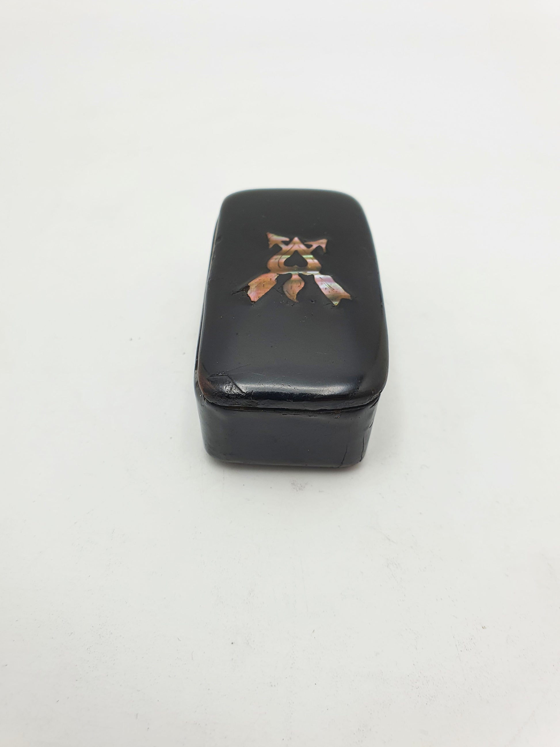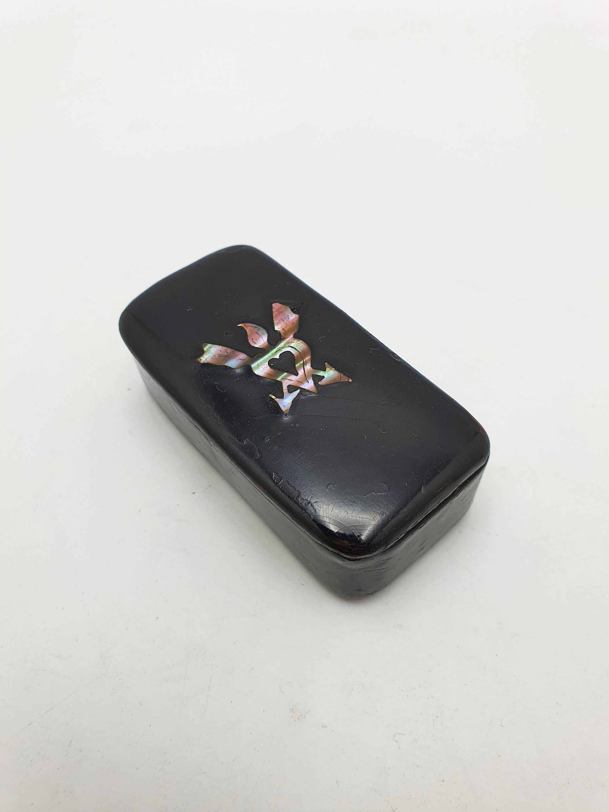 Papier-Mâché Snuff with Mother-of-Pearl Inlay of Heart & Torch Motif – circa 1880
