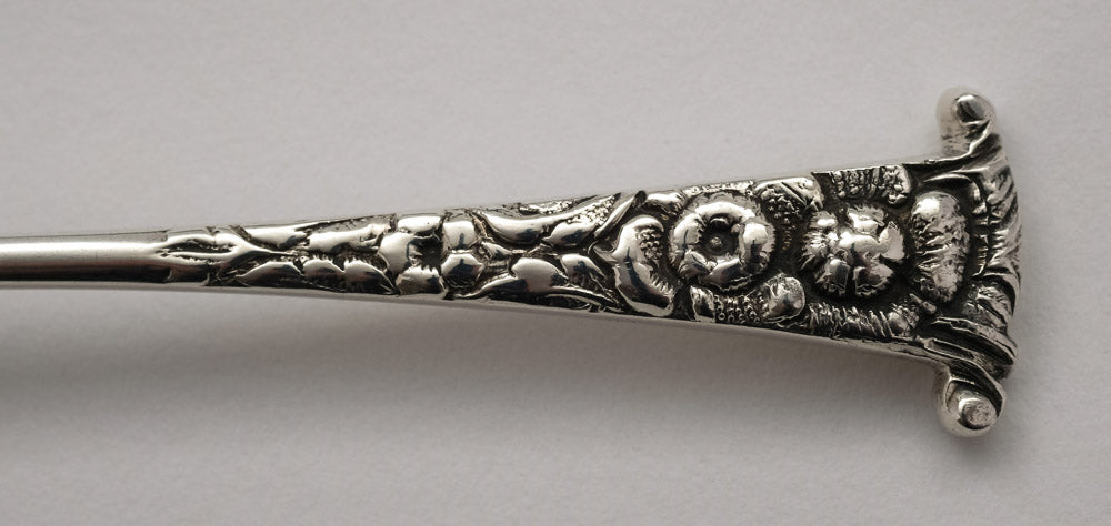 A Very Nice Pair of Antique Victorian Silver Preserve/Jam Spoons with embossed flora decorations to the handles. They come in their original felt and silk lined box. Hallmarked for London, 1892.