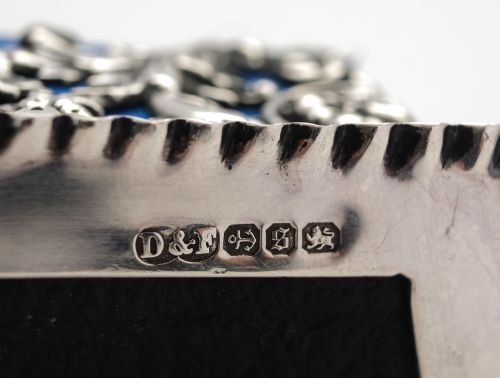 A Pretty Victorian Silver Pin Cushion with diamond shaped base with pierced and embossed sides and blue silk pin cushion - Made by Deakin & Francis and hallmarked for Birmingham 1892 FREE UK & Worldwide Delivery Measurements Height 1 1/2 ( approx. 3.75 cm ) Length 3 ( approx. 7.5 cm ) Width 3 ( approx. 7.5 cm ) Weight 57 g In good condition