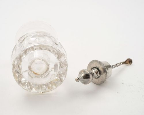 A nice Royal Mail Steamer Packet Condiment Bottle in cut glass with silver plated dip spoon and the body is etched with Royal Mail Steamer Packet Company - circa 1900 FREE UK Delivery. REST OF WORLD DELIVERY CHARGE £20.00 Measurements Height 4 1/4 (approx. 11 cm ) Diameter at widest point 3 (approx. 7.5 cm ) Weight 245 g In good condition - no cracks or chips to the glass