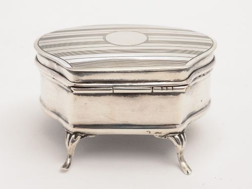 A sweet English silver ring box with engine turned top vacant cartouche and velvet lined interior. Marked C & S for the maker Collingwood & Sons and hallmarked Birmingham 1911. Worldwide first class tracked and signed for delivery is included in the price. Measurements: Height: 1 1/4 (approx 3.2cm) Length: 2 1/2 (approx 6.5cm) Depth: 2 (approx 5cm) Total weight: 63g Lovely ring box would make a great gift! In good condition