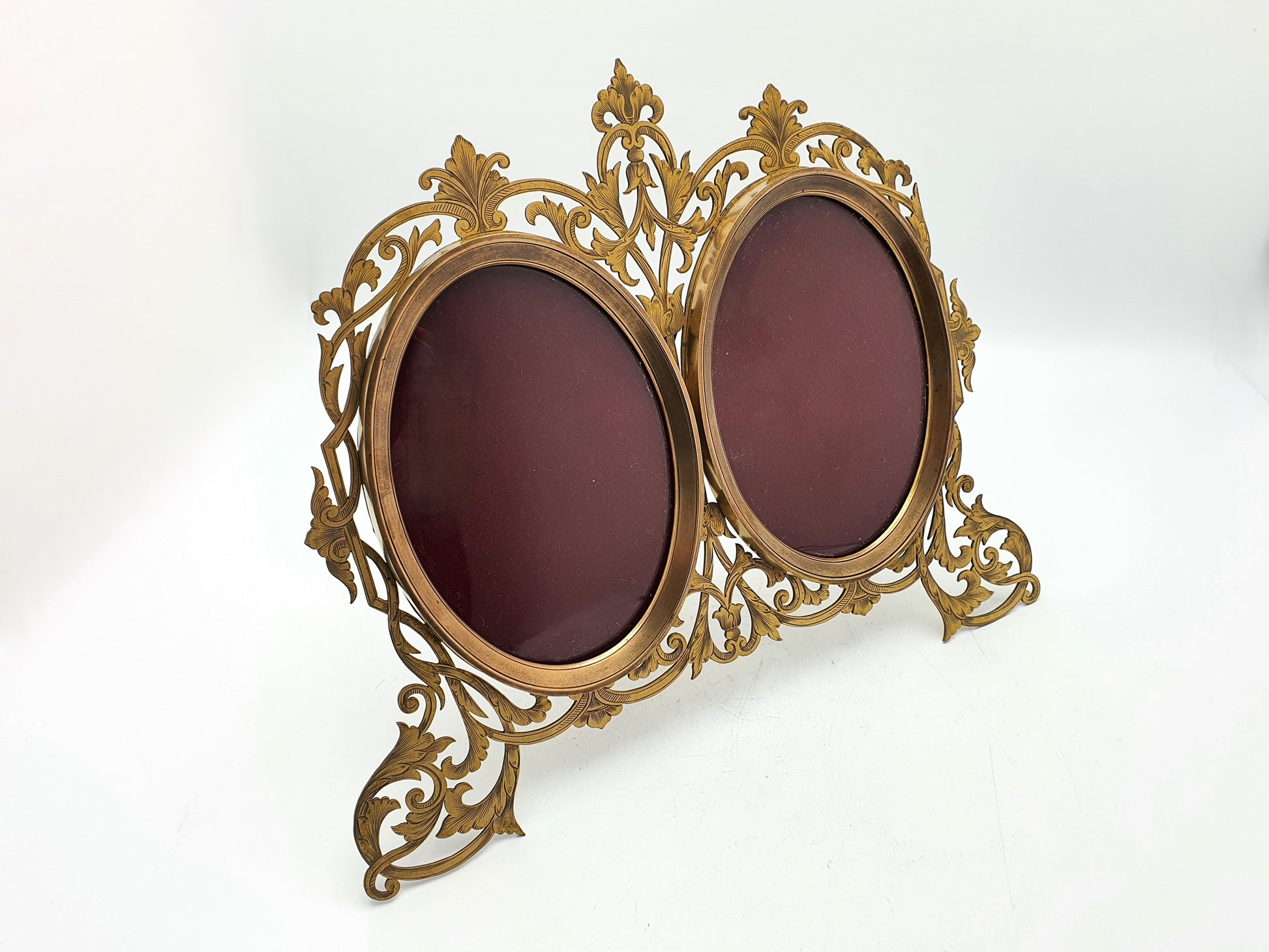 A Splendid Victorian Gilded Brass Double Photo Frame with pierced and engraved decoration and easel back. To access photos, there are screws on the back - circa 1890.