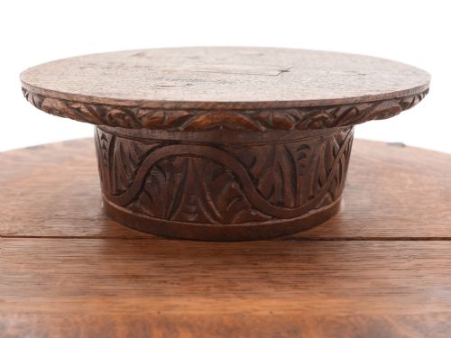 A stunning English Victorian carved oak Lazy Suzan with central family crest of a lion (almost certainly came from a large country estate and was probably made by the local carpenter to the original family). Circa 1890. FREE worldwide delivery. Measurements: Height: 4 (approx 10cm) Diameter: 20 (approx 50cm) Weight: 4520g In good condition.