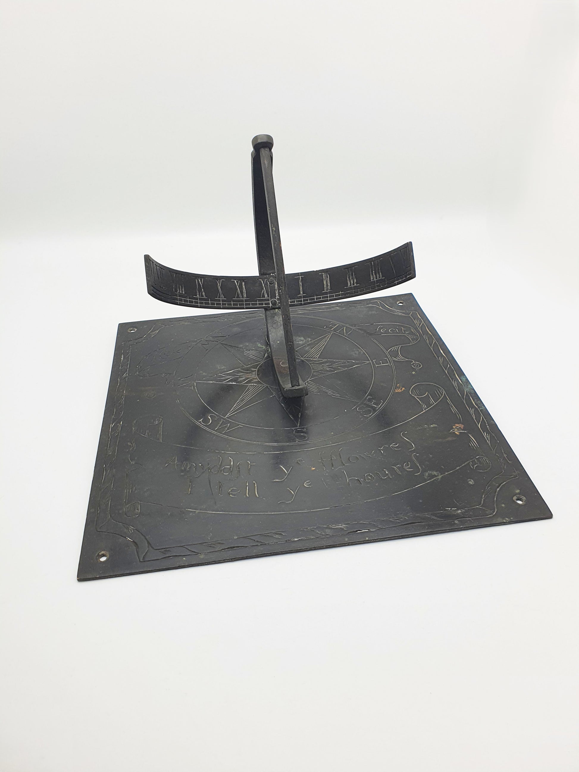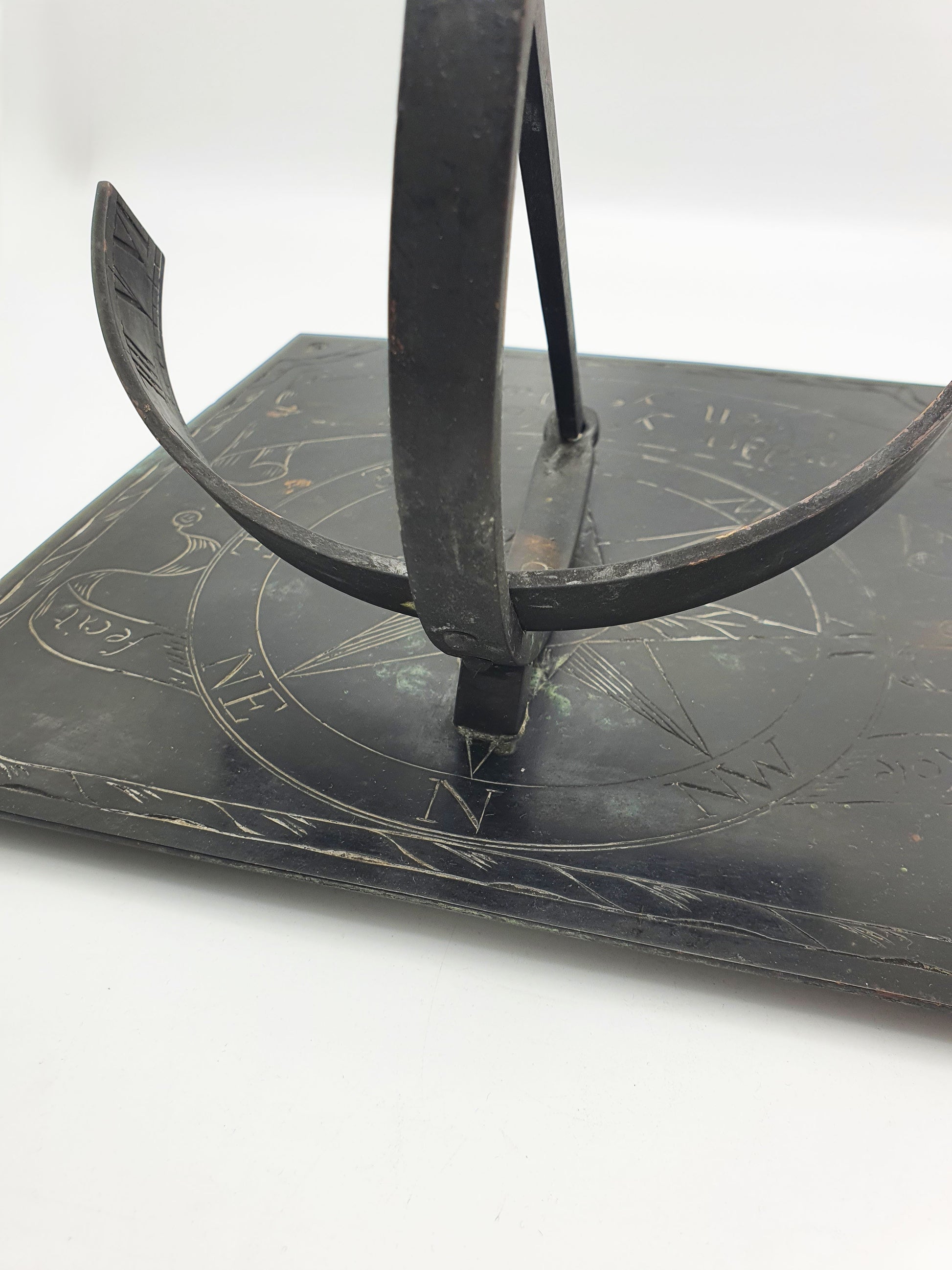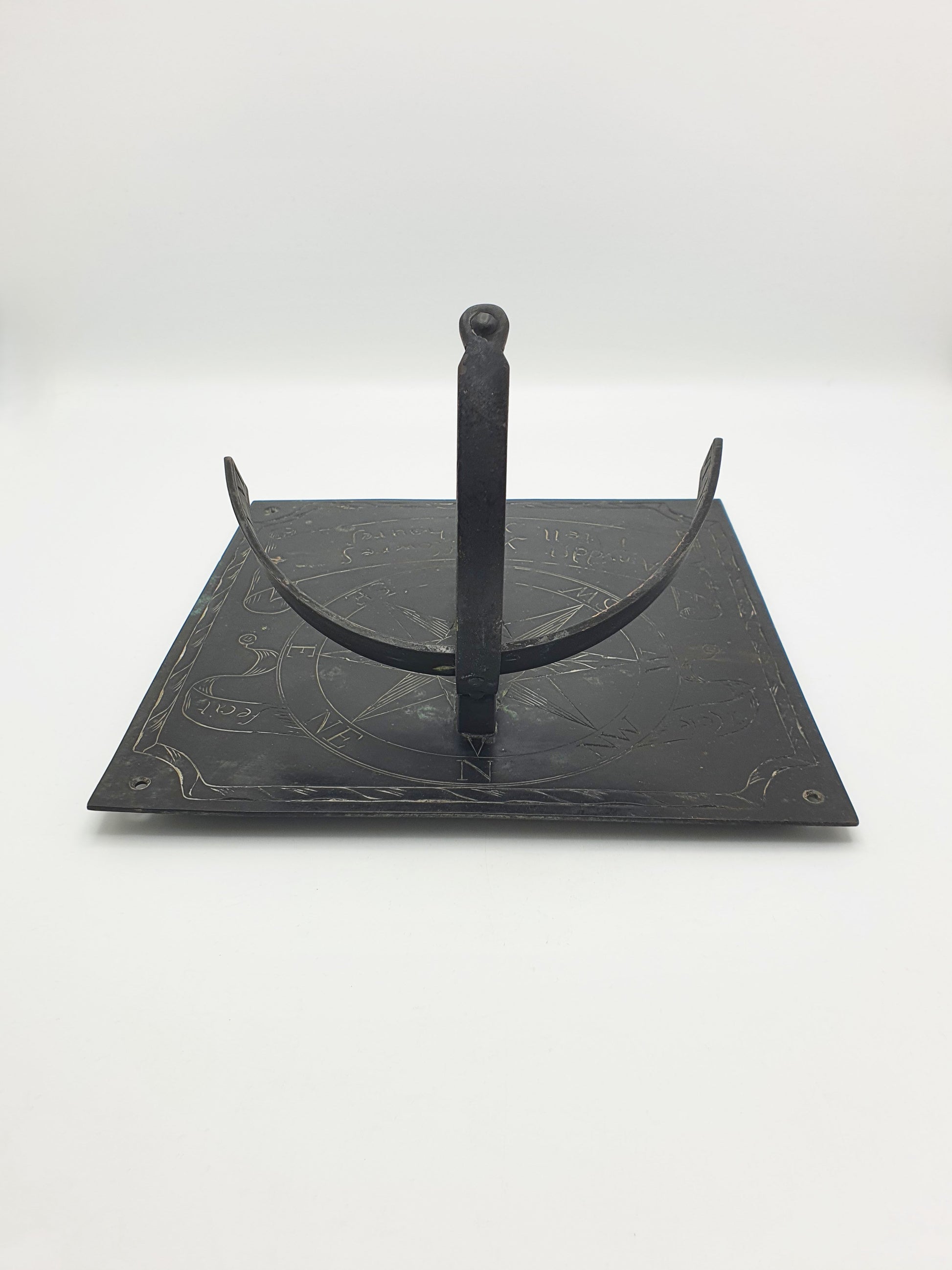 In good condition – Deeply aged finish and signs of natural wear consistent with age and outdoor exposure. All engraved elements remain legible, and the gnomon and time band are structurally sound and securely attached.