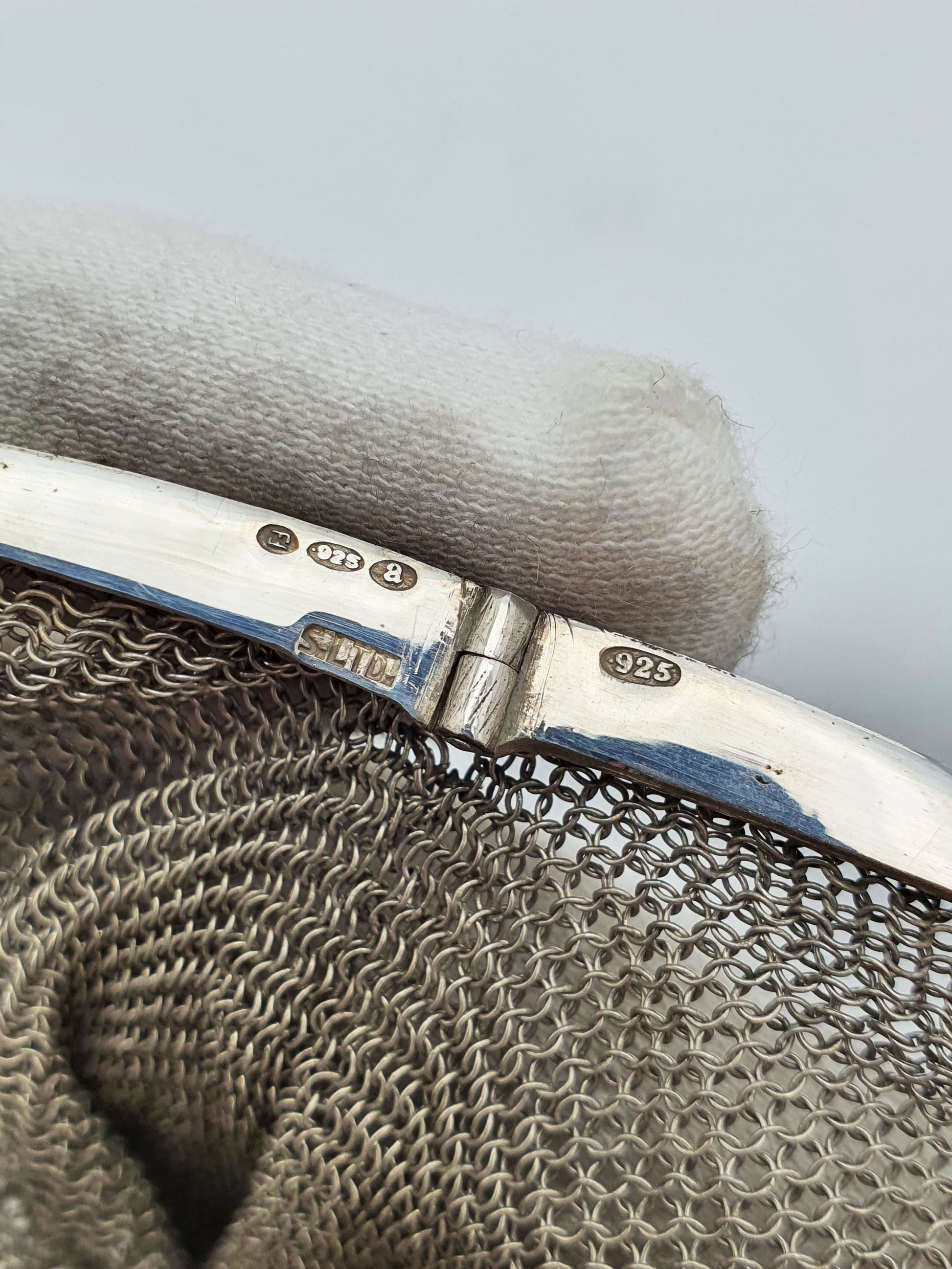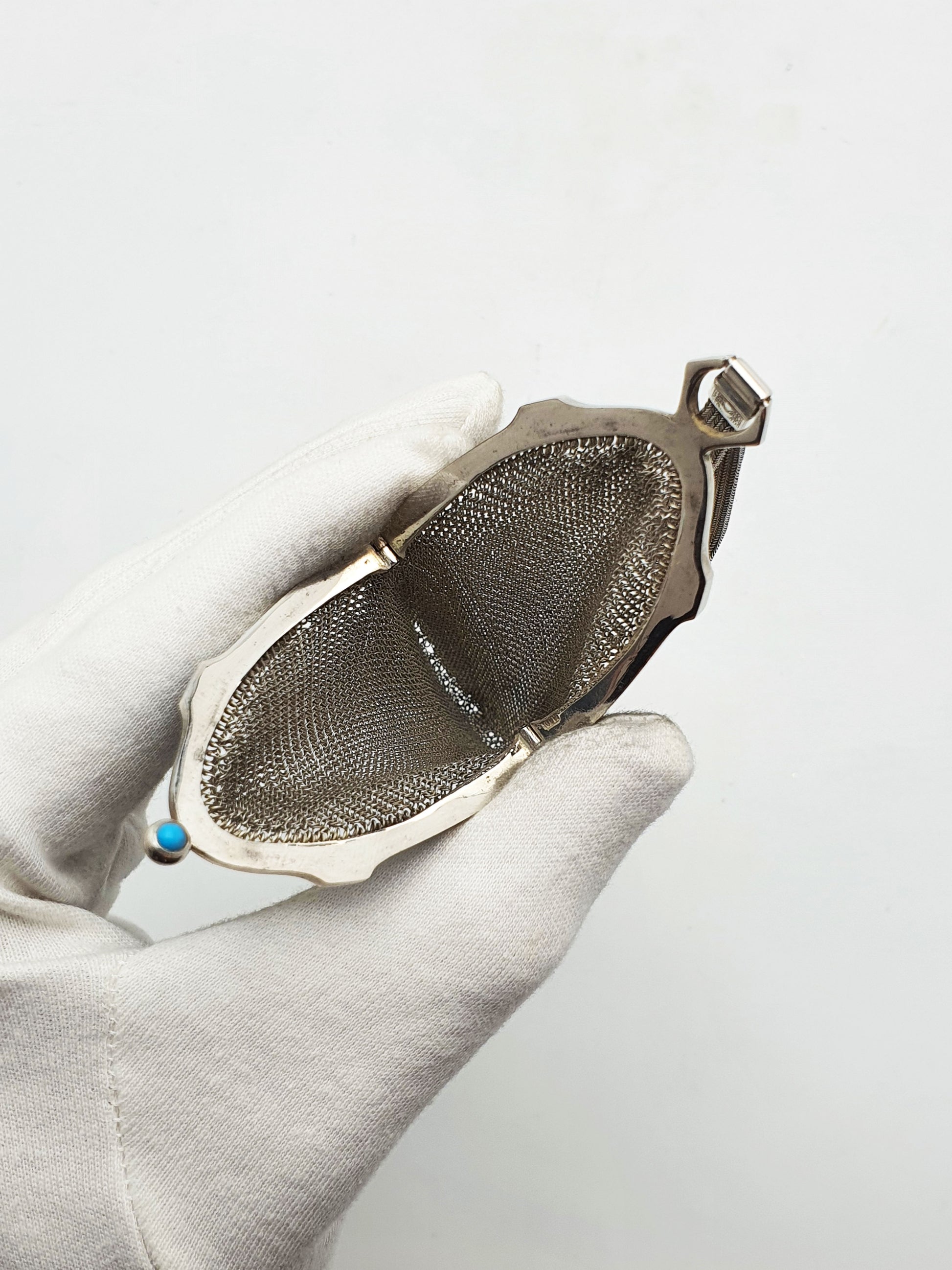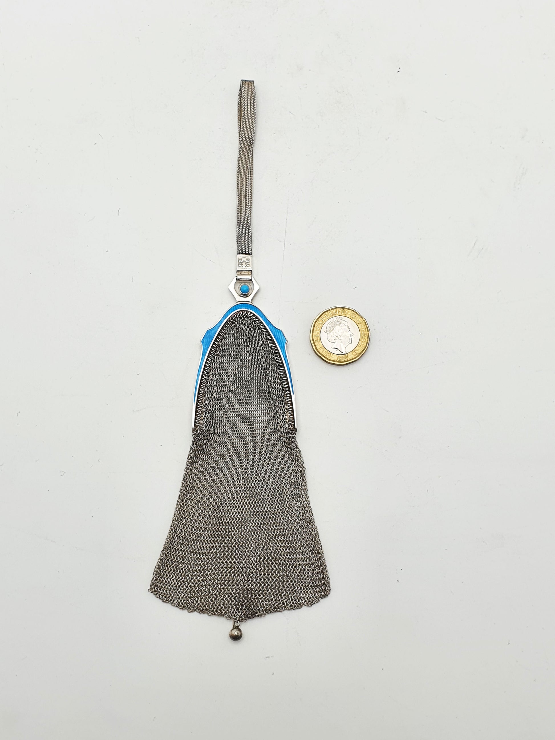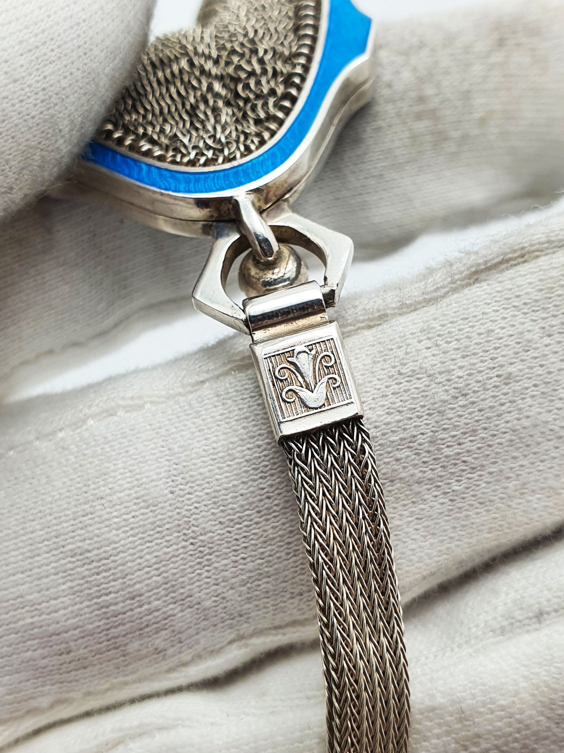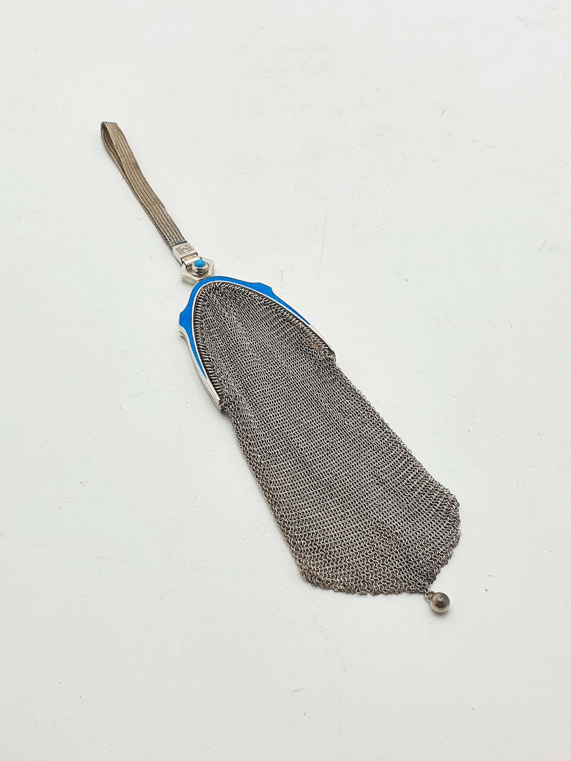 Unusual Continental Silver & Blue Guilloché Enamel Mesh Purse – circa 1900