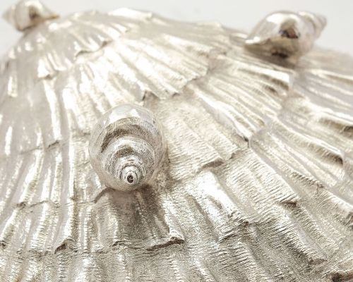 A Unusual Victorian Silver Plated Oyster Serving Dish in the shape of an oyster sits on three shell feet with a concealed hinged lid circa 1870 - We have never seen one of this type in our 40 years of antique selling ! FREE UK & Worldwide Delivery Measurements Height 1 3/4 ( approx 4.5 cm ) Length 9 ( approx 23 cm Width 8 ( approx 20 cm ) Weight 1560 g In good condition - any dark areas are from the photography