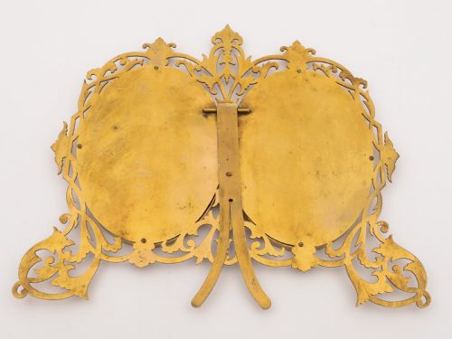 A lovely English Victorian gilded brass double photo frame with pierced and engraved decoration and easel back. To access photos there are screws on the back. Circa 1890. FREE worldwide delivery. Measurements: Height: 10 (approx 25cm) Length: 11 1/4 (approx 28cm) Depth: 1/2 (approx 1.25cm) Picture height: 21.75cm) Picture length: 6 3/4 (approx 16.75cm) Weight: 502g In good condition