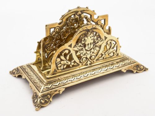 A good English Victorian 2-division brass letter rack with pierced and embossed decoration. Circa 1890. FREE worldwide delivery. Measurements: Height: 4 1/2 (approx 11.25cm) Length: 8 (approx 20cm) Width: 4 1/2 (approx 11.25cm) Weight: 761g In good condition
