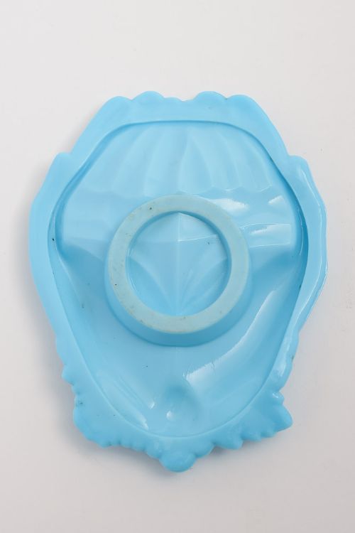 Lovely Victorian opaque blue glass calling or business card dish in the shape of a pair of hands with grapes at the bottom. We believe was made in Stourbridge England. Worldwide first class tracked and signed for delivery is included in the price. Measurements: Length: 3 3/4 (approx 9.5cm) Width: 6 (approx 15cm) In good condition