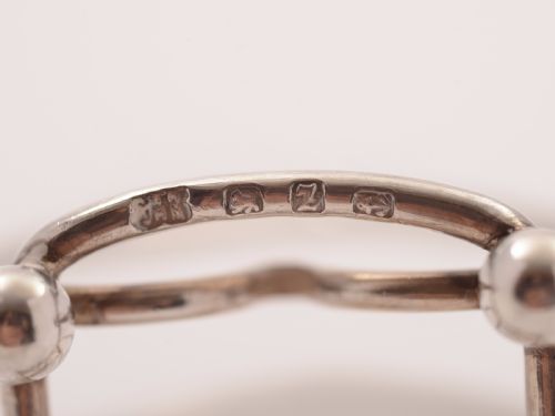 A fabulous pair of English Victorian silver toast racks with heart shaped dividers and ring handle to top. Both stand of 4 ball feet. Hallmarked Birmingham 1899 and marked JTH over JHM for the maker John Thomas Heath & John Hartshorne Middleton of Hukin & Heath. FREE worldwide delivery. Measurements: Height: 2 1/2 (approx 6.25cm) Length: 2 3/4 (approx 6.75cm) Width: 1 1/2 (approx 3.75cm) Silver weight: 84g In good condition - any dark areas are shadows from the photography.