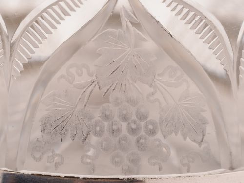 A beautiful English Victorian cut glass and silver plated preserve pot with lovely engraved fruit decoration to lid. Circa 1890. Worldwide first class tracked and signed for delivery is included in the price. Measurements: Height (handle up): 5 1/2 (approx 13.75cm) Height (handle down): 3 1/2 (approx 8.75cm) Diameter across base: 5 1/4 (approx 14.5m) Total weight: 520g In good condition - no chips or cracks to glass and any dark areas are shadows from the photography there is no damage to the silver plate.
