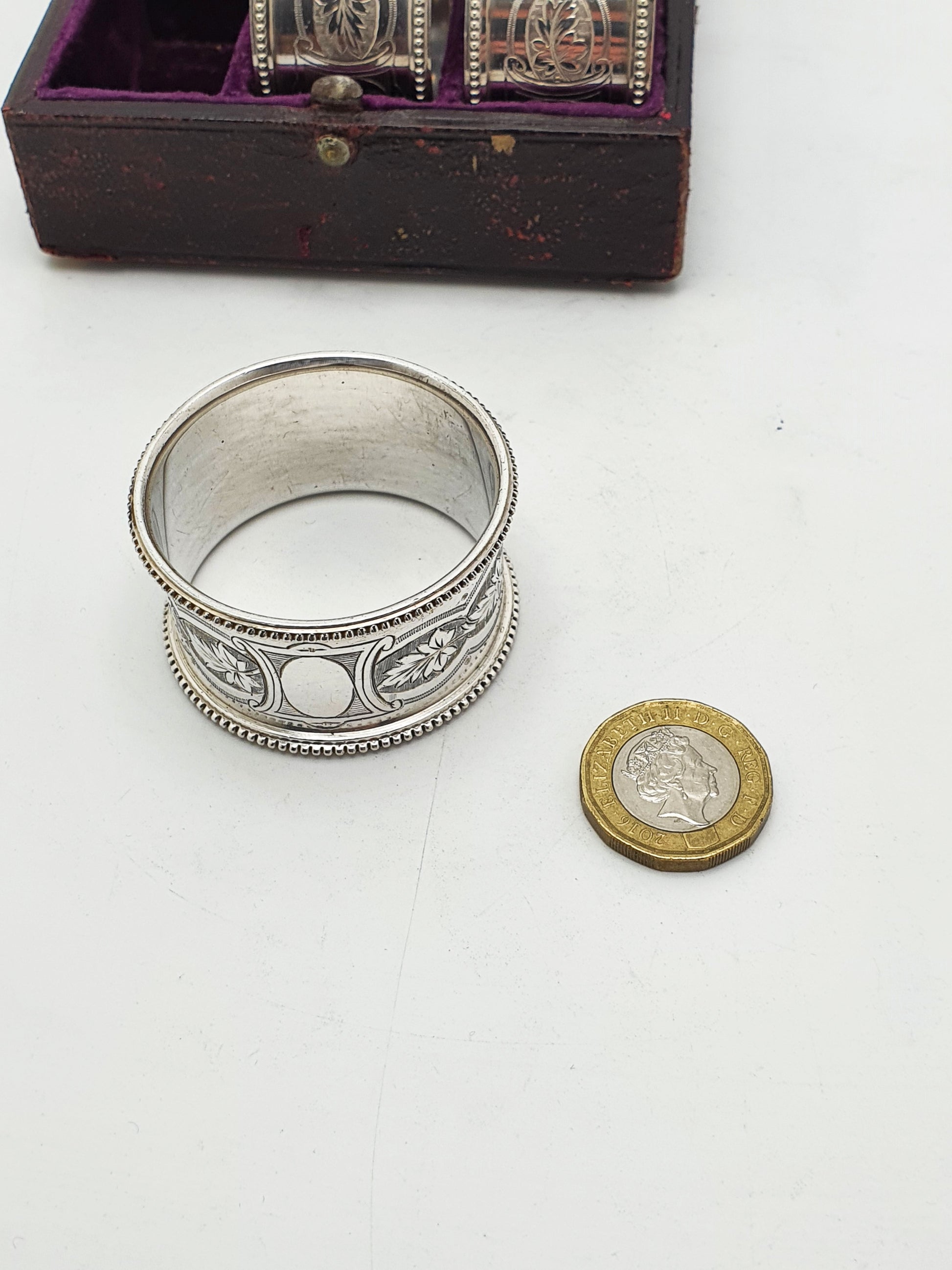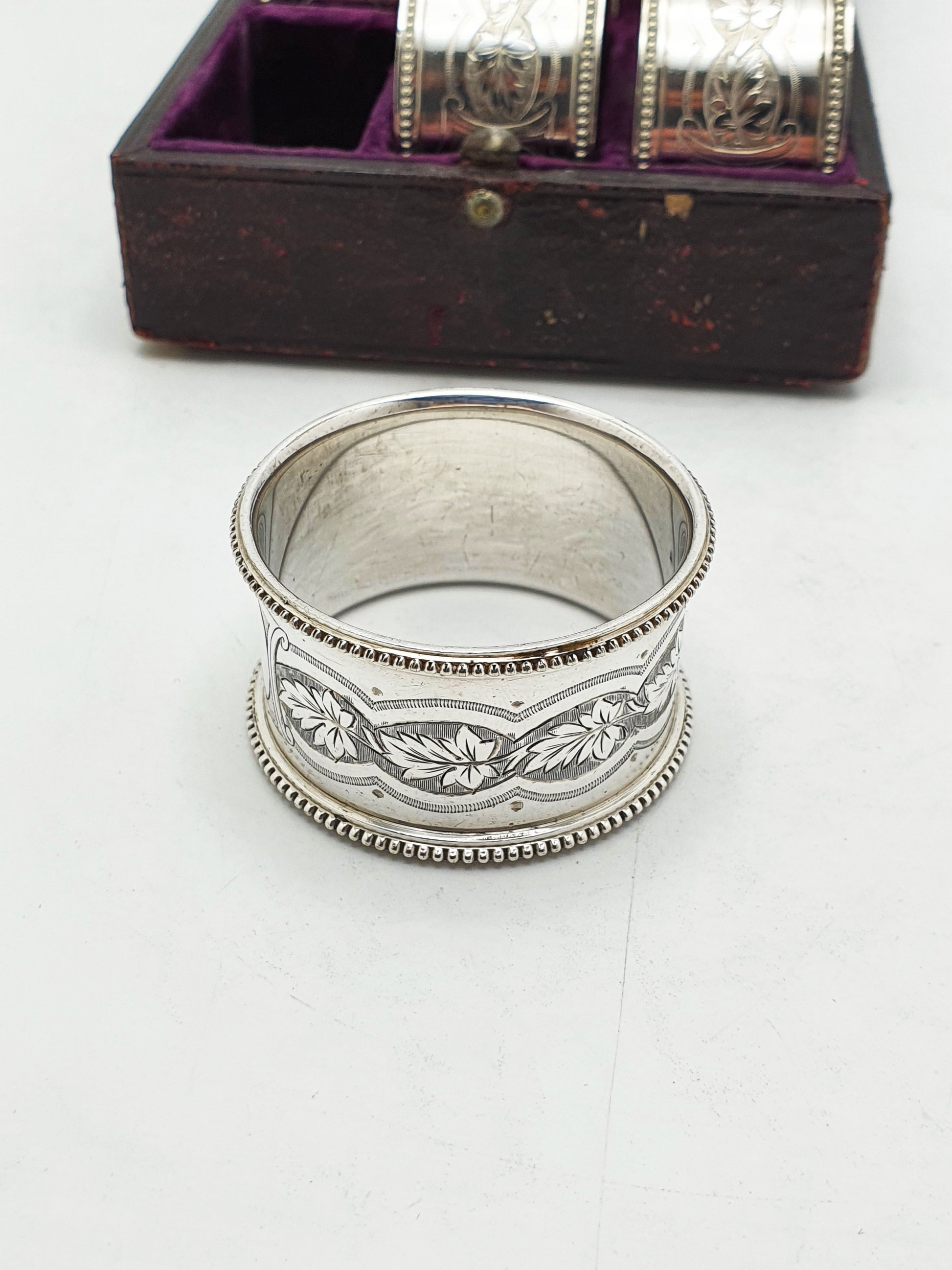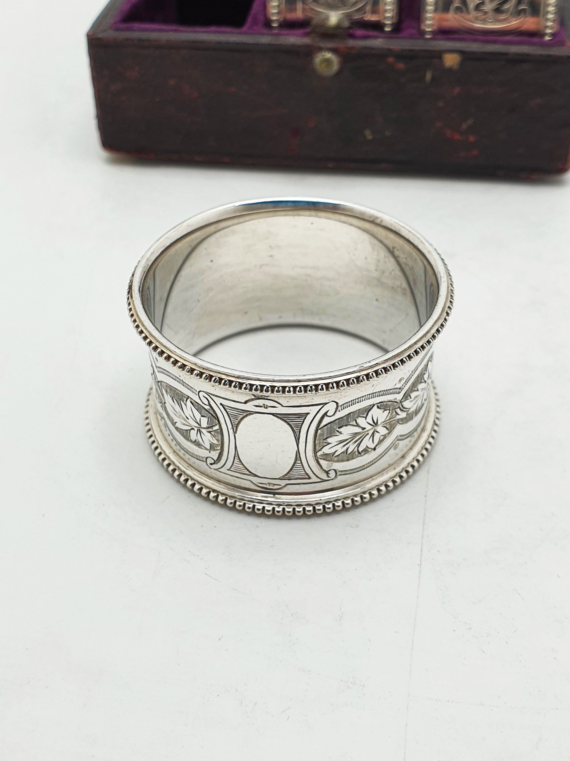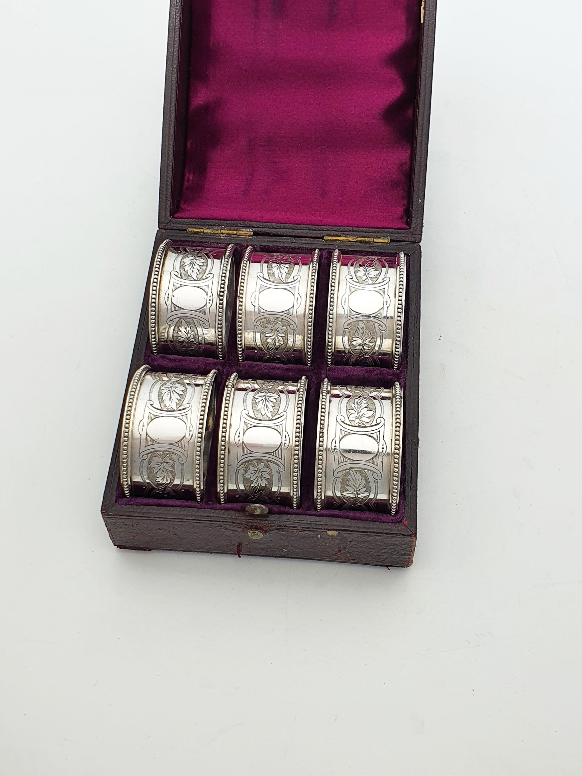 Victorian Silver-Plated Napkin Rings – Set of 6 in Original Velvet-Lined Case – circa 1890