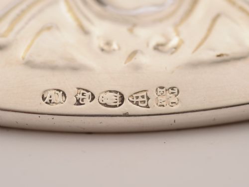 A nice English Victorian silver plated salver/tray with lovely decorative embossed decoration to outer edge and engraved decoration to main body with central vacant cartouche. Has the makers mark for :Thomas Latham & Ernest Morton England. Circa 1890 FREE worldwide delivery. Measurements: Height: ½” (approx. 1.25cm) Diameter: 12” (approx. 30cm) Weight: 835g In good condition - any dark areas are shadows from the photography there is no damage to the silver plate.