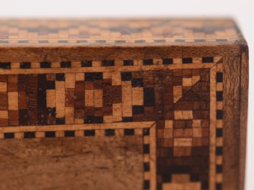 A good English Victorian tunbridge ware calling card case with floral design to the centre of both sides. Slides open to reveal card compartment circa 1880. FREE worldwide delivery. Measurements: Height: 1/2 (approx 1.25cm) Length: 4 (approx 10cm) Width: 2 3/4 (approx 6.75cm) Weight: 52g In good condition