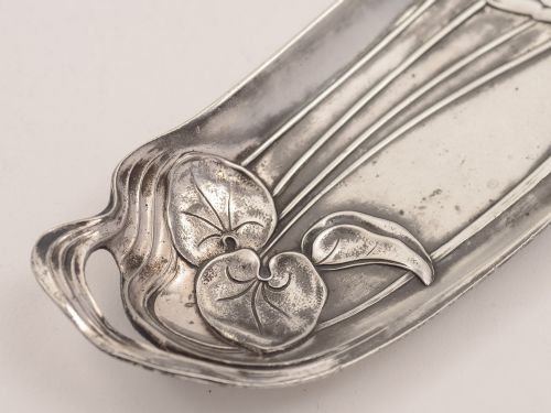 A beautiful WMF Art Nouveau pewter pen/trinket tray with lovely stylised lily decoration. Marked WMF circa 1900. Worldwide first class tracked and signed for delivery is included in the price. Measurement: Length: 10 (approx 25cm) Width: 2 1/4 (approx 5.5cm) Gorgeous piece of Art Nouveau WMF pewter one for the collection! In good condition